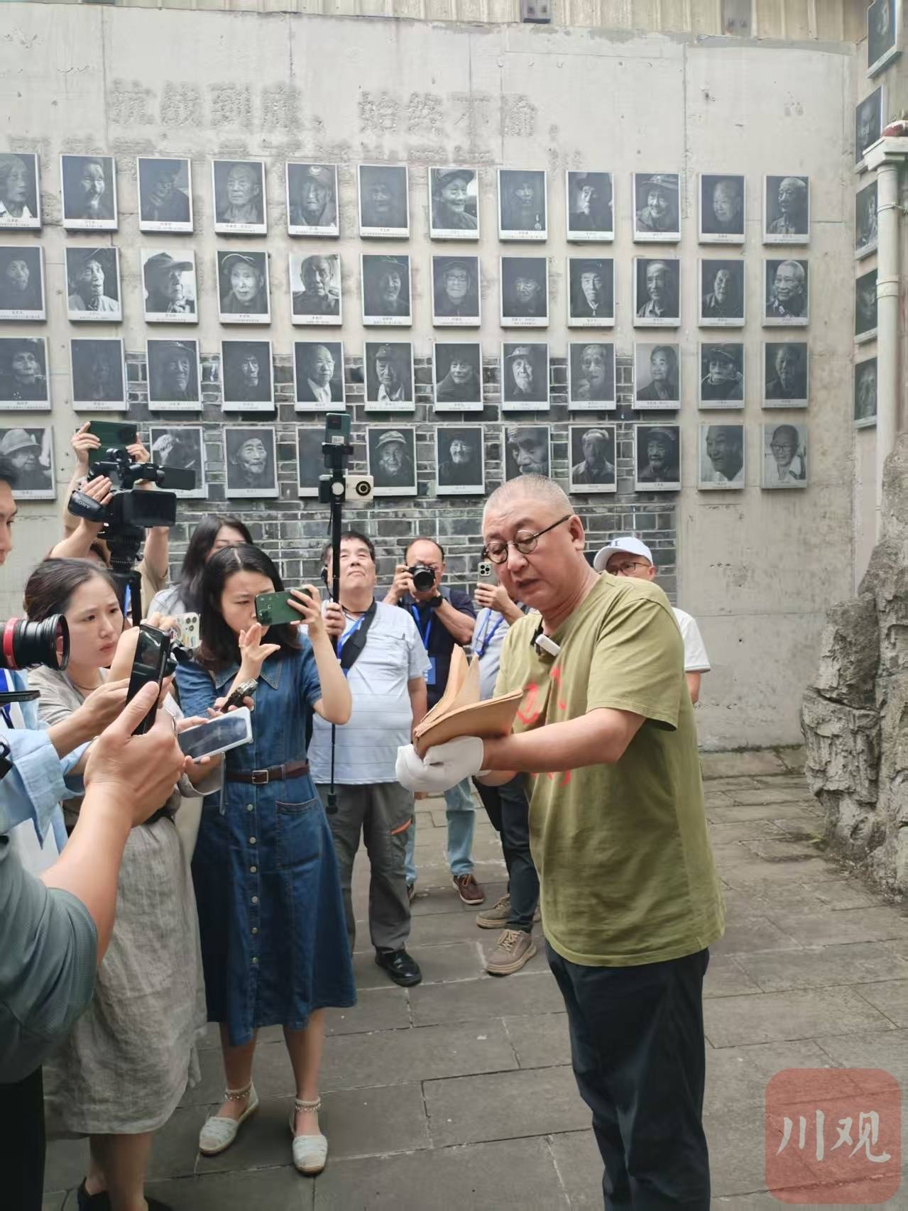 樊建川(右)接受2025“文化抗战川渝行”两岸媒体参访团采访