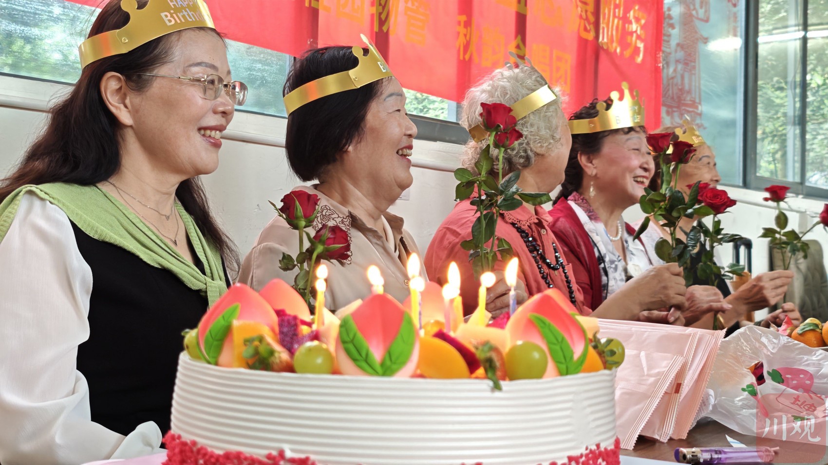 5天前,在社区“邻悦乐享空间”内,81岁的唐德蓉与另外几位生日相近的老人一起头戴生日帽、手拿鲜花,在“老伙伴时光”支援服务队的近40位成员的《生日快乐歌》歌声中吹灭了蜡烛。“子女都没在身边,我就没怎么过生日。没想到有这么多老伙伴来陪我吃蛋糕,很幸福。”回想起当天的场景,唐德蓉还满脸笑容。