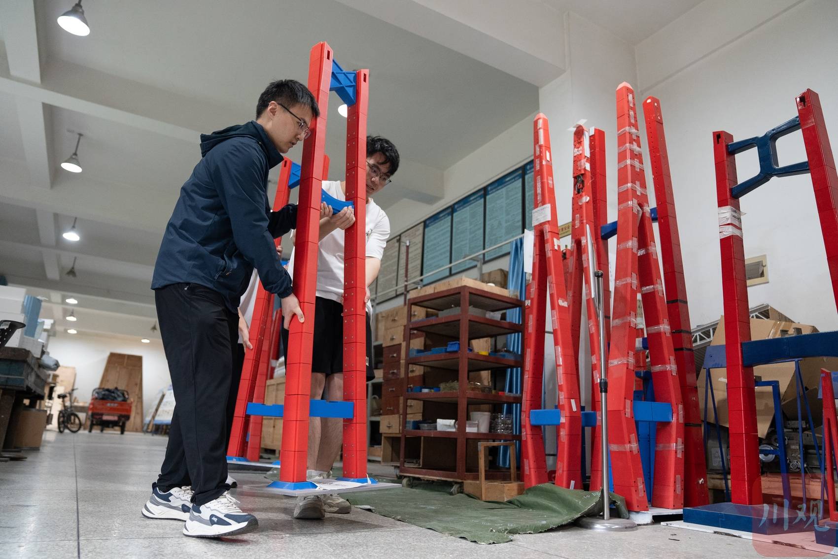 科研团队搭建桥梁模型