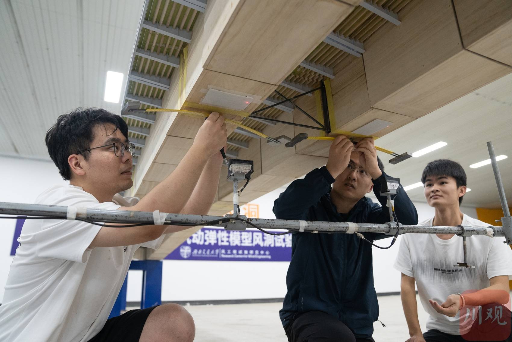 风工程科研团队为桥梁模型装上阻尼器