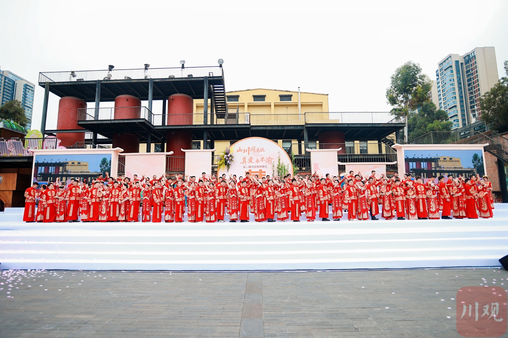 10月28日的成都东郊记忆被浪漫包裹,第二届川渝集体婚礼在这里举行,60对新人身着统一定制的传统婚服,共同许下爱的誓言,现场欢呼声与掌声此起彼伏,幸福氛围感染了每一个人。