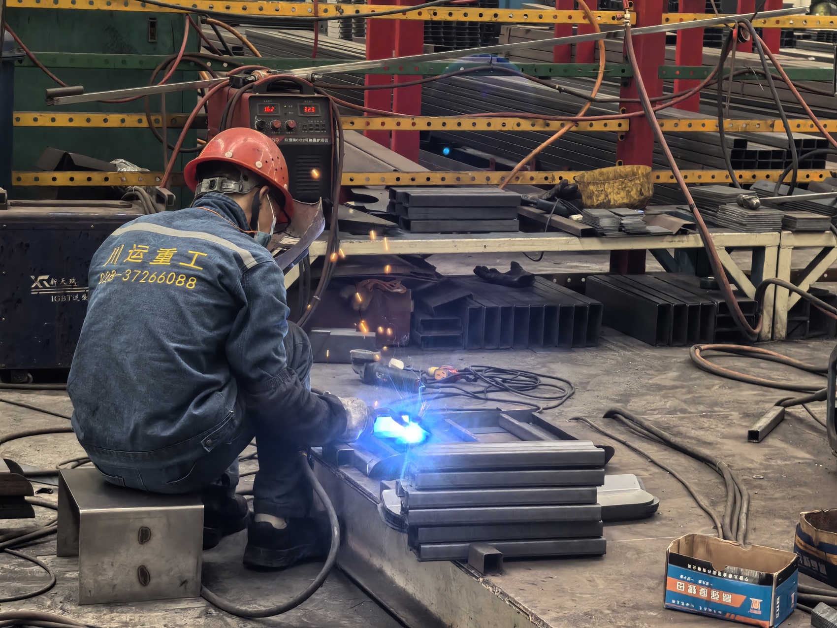 近日,川运重工工人进行焊接作业。丹棱县委宣传部供图