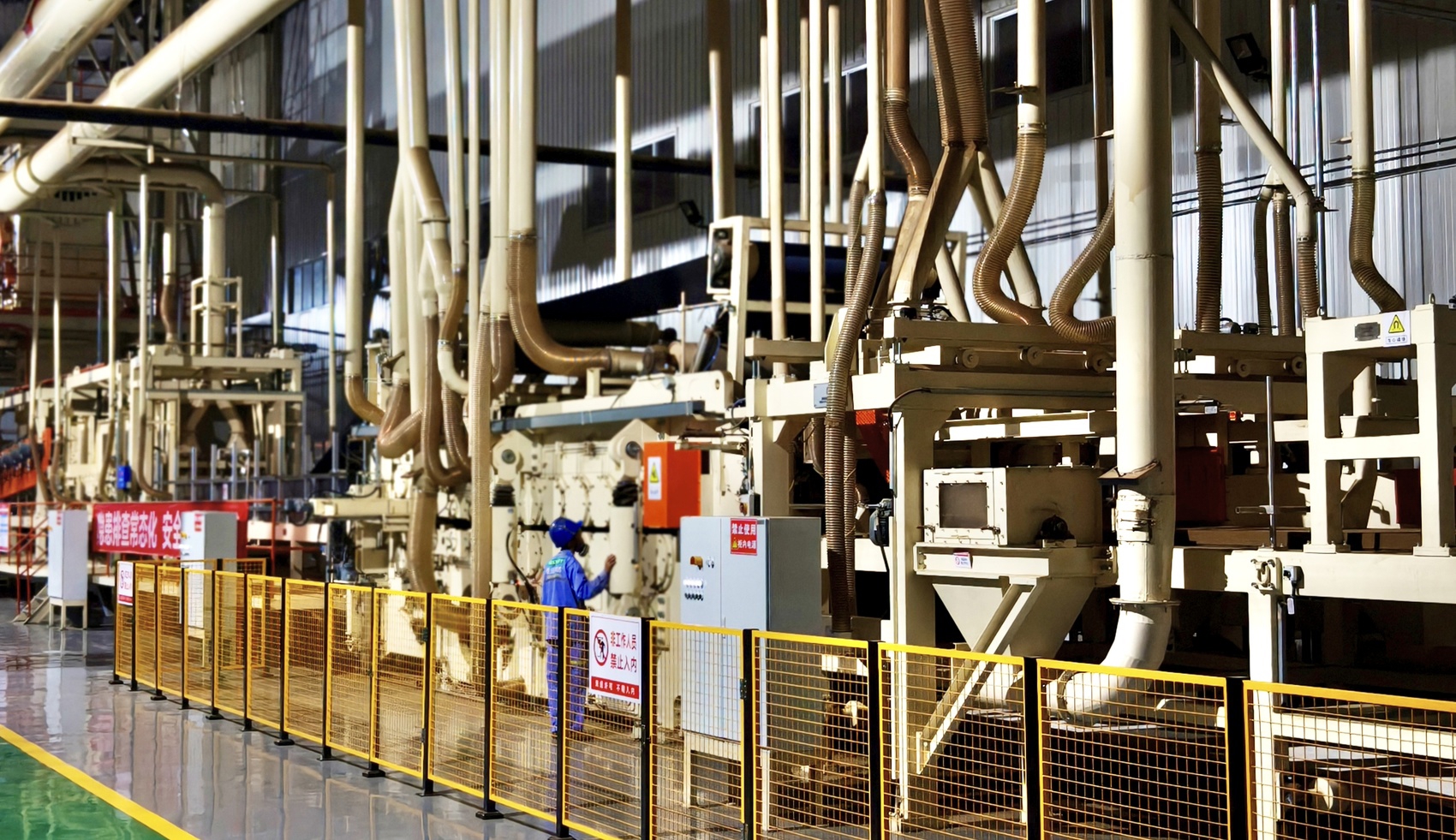 近日,在位于青神县的山东佰世达MDF环保新材料项目的车间里,工作人员进行设备调试。青神县委宣传部供图