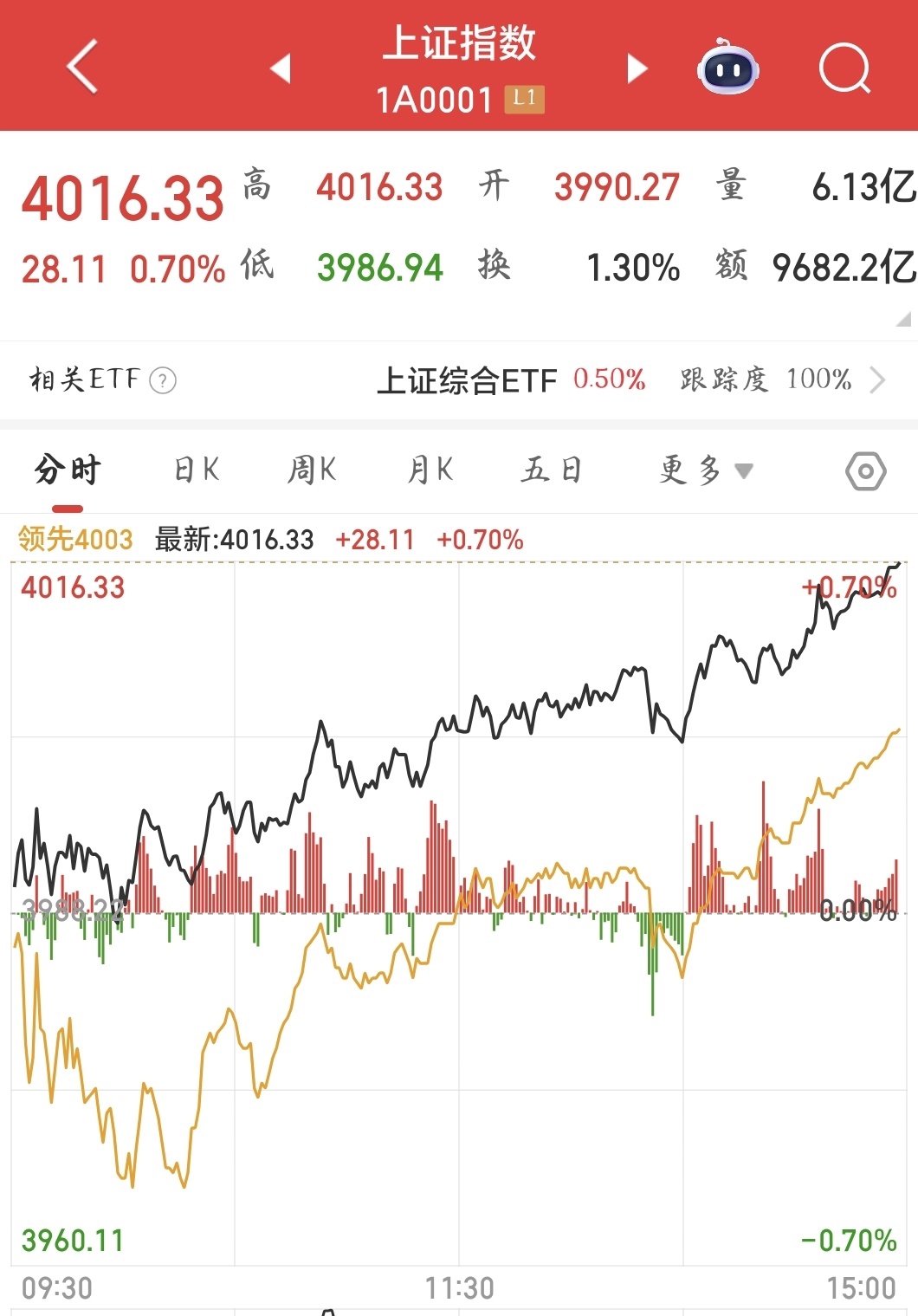 这份“喜悦”并非毫无波折。就在前一天,沪指曾一度“闯关”成功,盘中最高摸到4010点,创下2015年8月以来的十年新高。但或许是面对关键点位的谨慎情绪,午后指数有所回落,最终收在3988点。