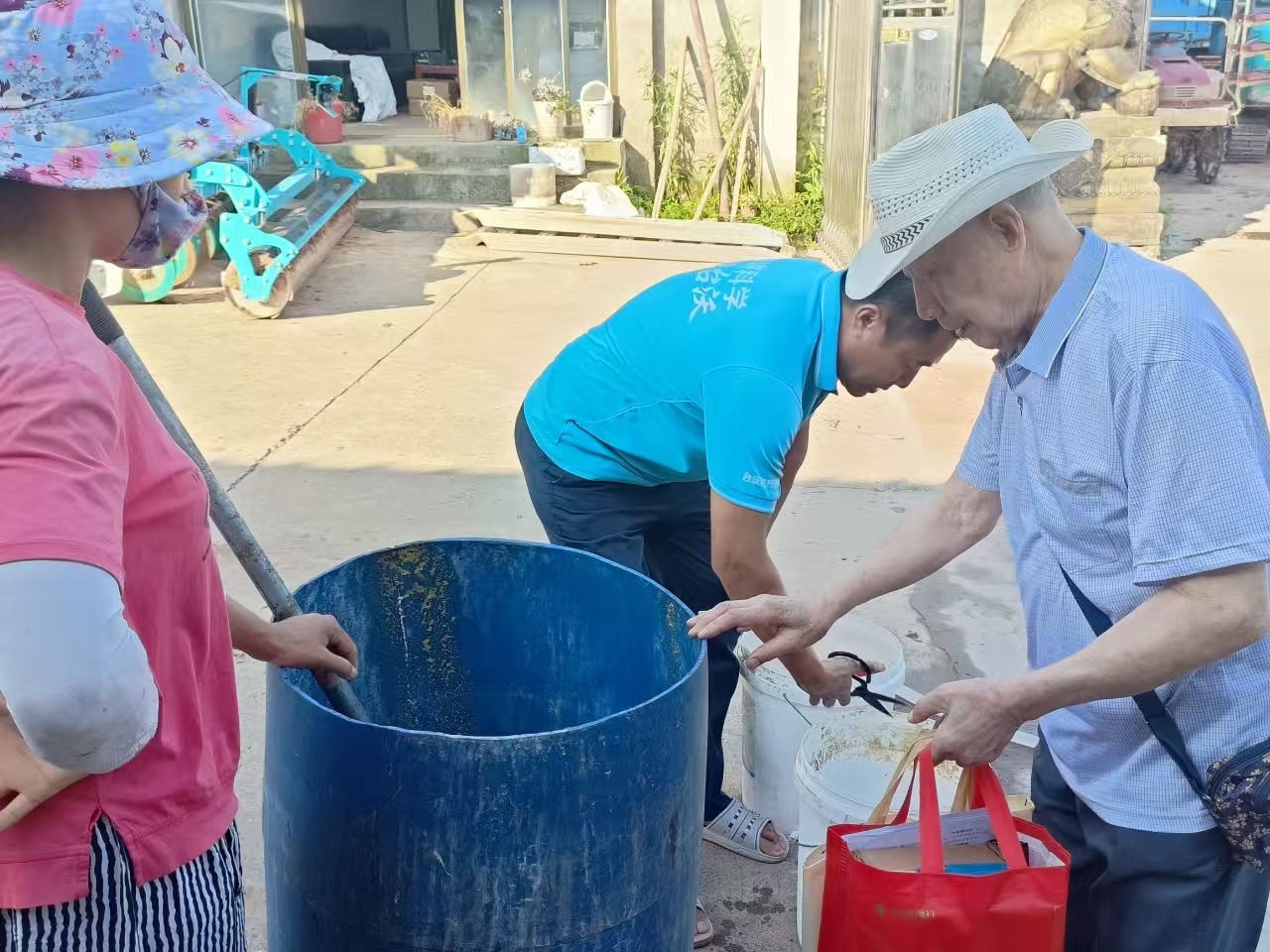 陈瑕指导村民调富硒肥料浓度。受访者供图