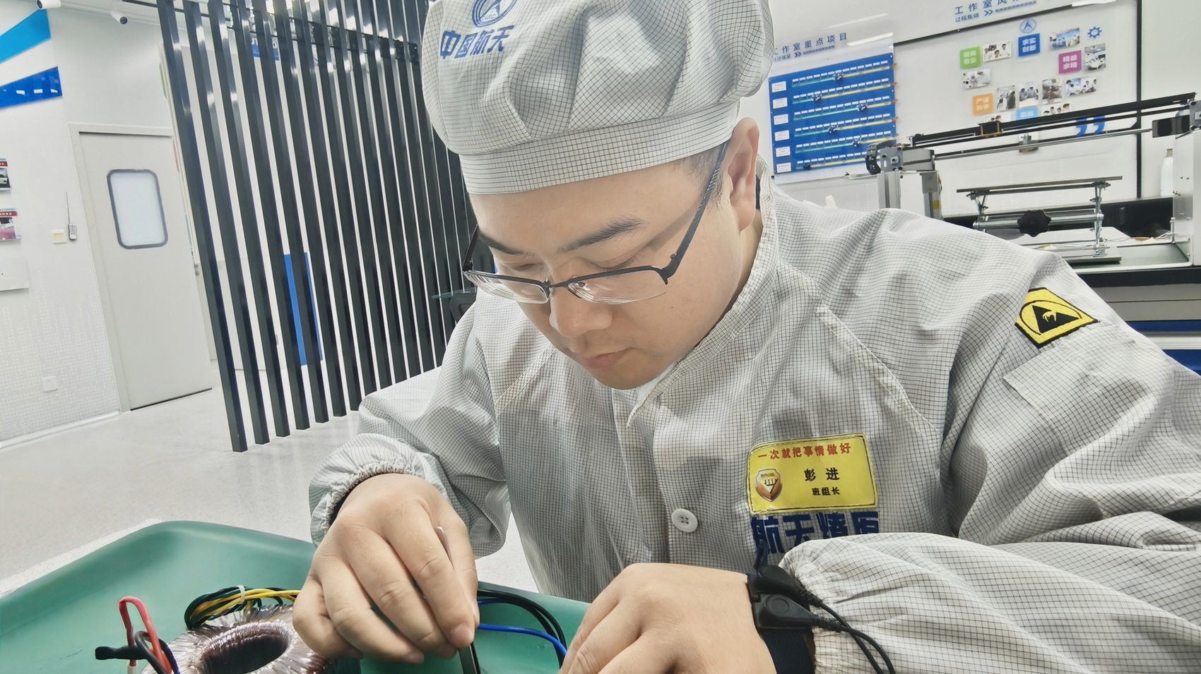 又如在发动机电缆焊接环节中,企业电缆操作团队面对着更加精细的挑战,有些导线在脱线时,需要人工将6根交替紧密缠绕的无碱玻璃纤维丝轻柔分离,再进行压接。“因纤维丝材质原因,我们无法使用传统的热脱器对电缆外壳脱皮脱线,这就要求工人必须手工脱线,佩戴手套。”企业主管工艺师彭子格说,一天操作上百根导线会导致皮肤红肿发痒,而这样的导线他们已操作了5000多根,“所有操作者都将自己的忍‘痒’力练得炉火纯青。”
