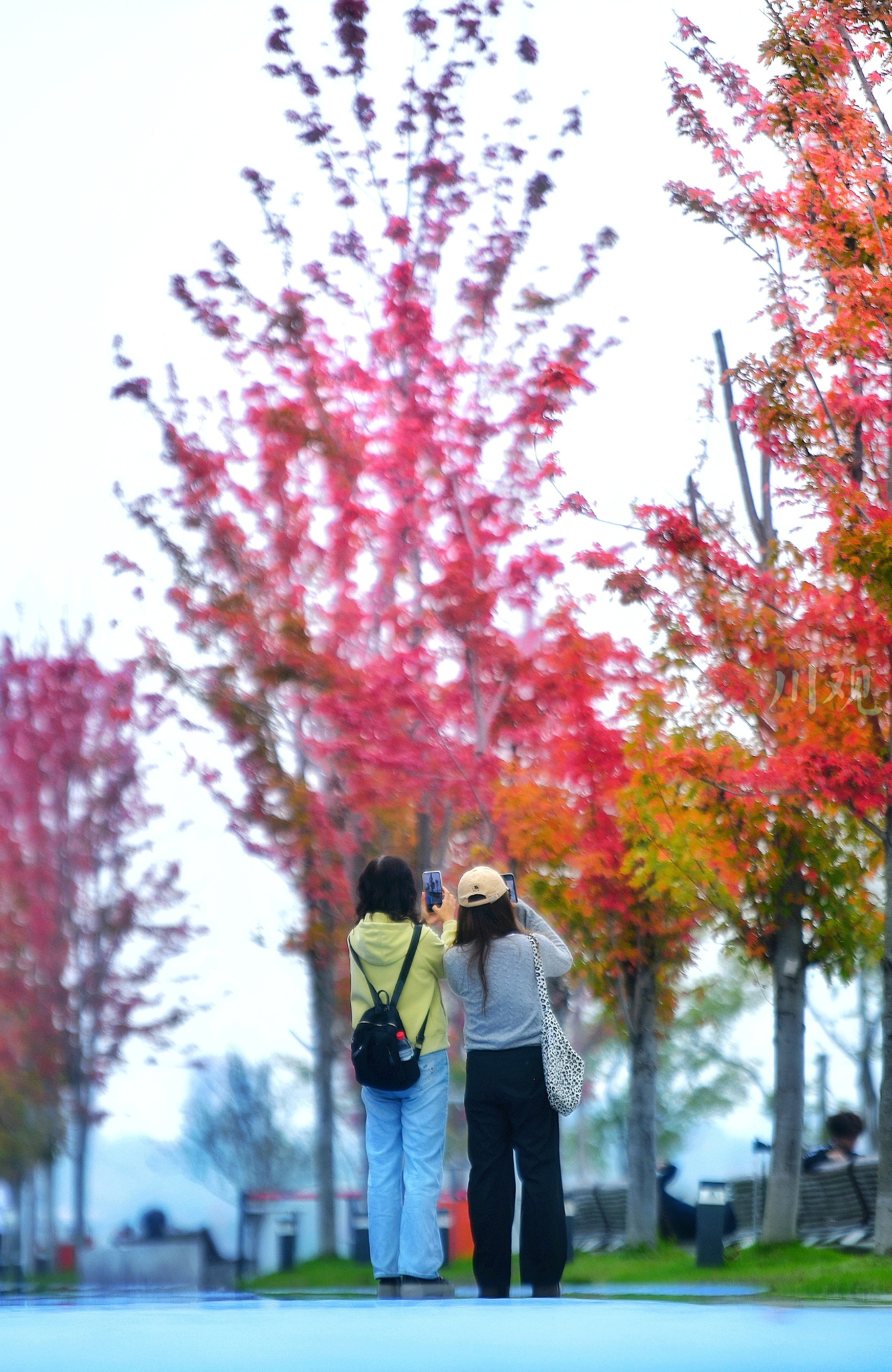 11月1日,秋雨后的蓉城兴隆湖已换上浪漫秋装。岸边景观树逐渐褪去翠绿,深浅不一的橙黄与绯红悄然浮现。记者在现场看到,市民三三两两沿湖漫步,或驻足欣赏湖边景色,或掏出手机打卡,定格这浓浓的秋日韵味。