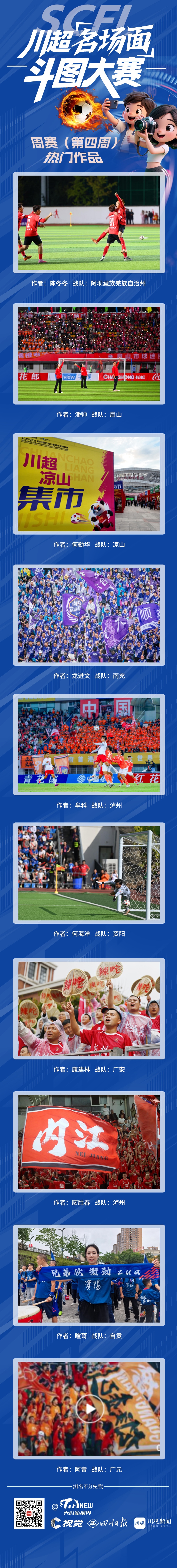 近期,我们还将公布“川超”名场面斗图大赛“月度十佳”作品,每名作者将得到500元奖励!“川超”名场面斗图大赛未完待续,敬请期待!