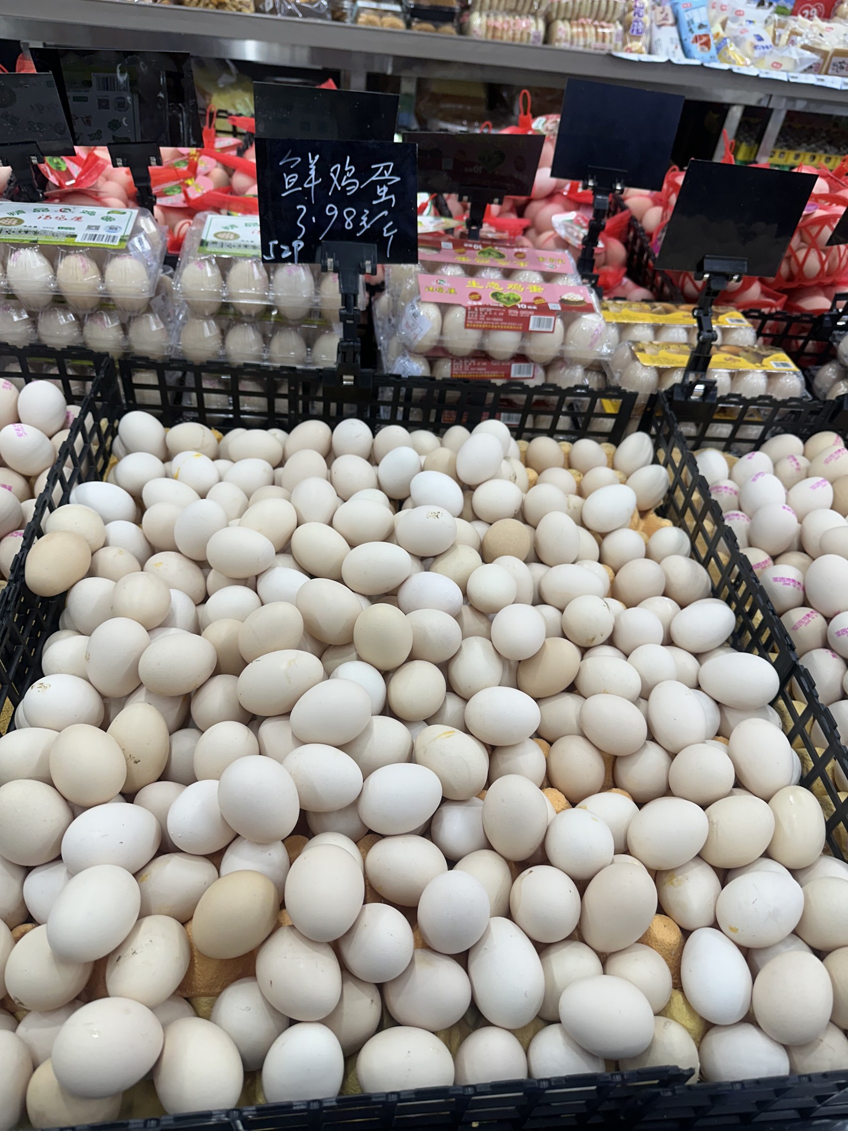青羊区金沙片区的生鲜超市,鲜鸡蛋价格3.98元。