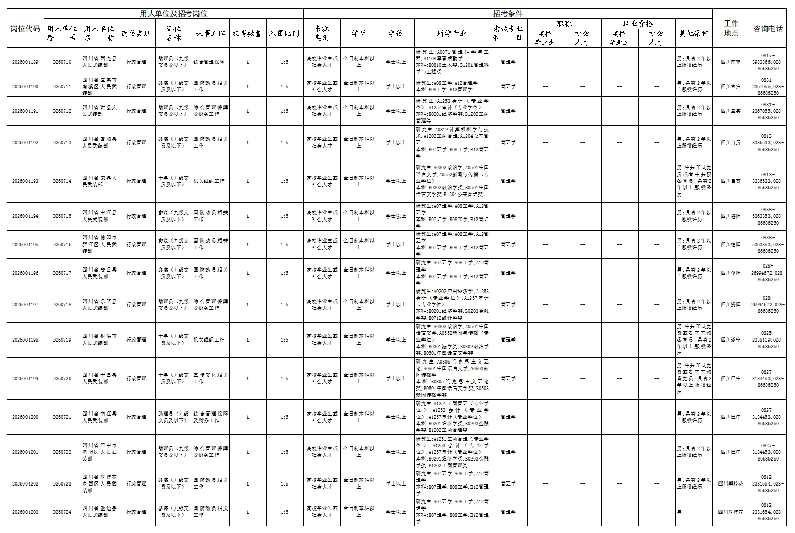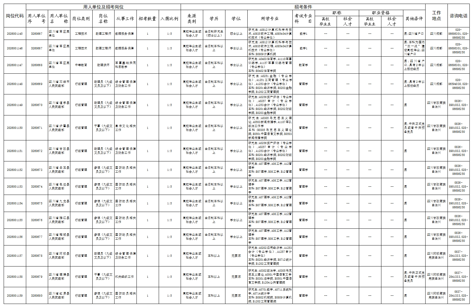 11月3日,记者从四川省军区获悉,四川省军区2026年面向社会公开招考59名文职人员,包括参谋、干事、助理员、助理工程师、助理讲师。附招考岗位计划。