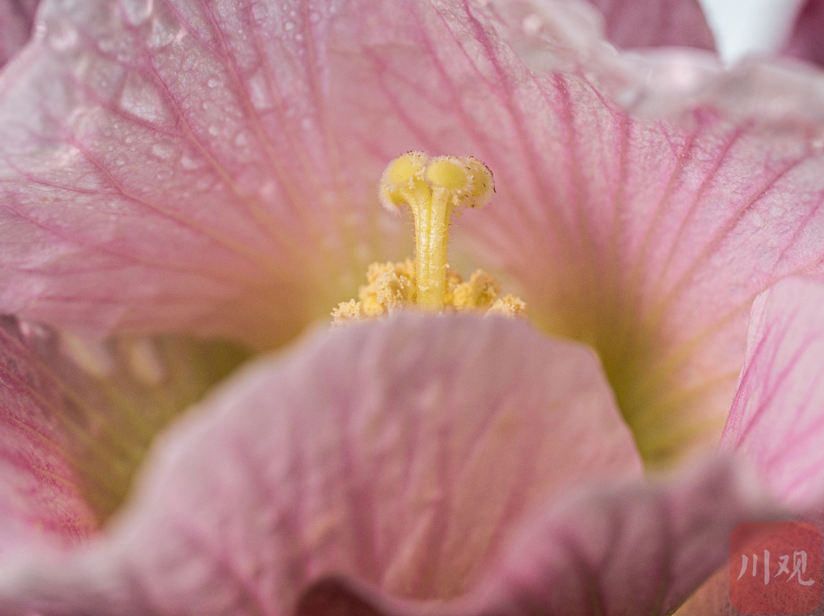 芙蓉花瓣上的雨滴。(10月27日拍摄)