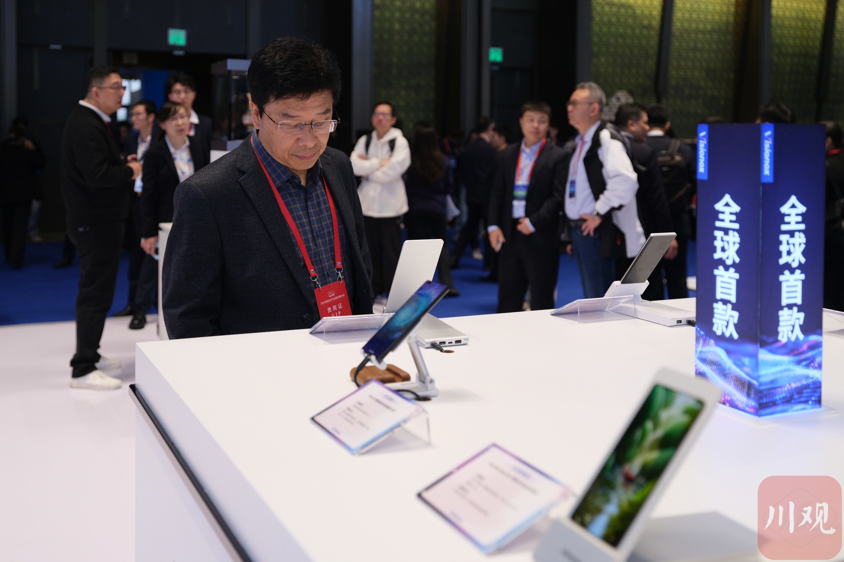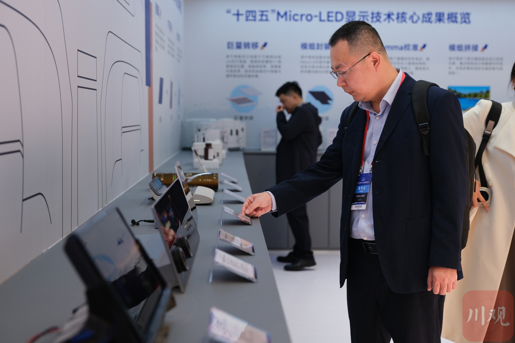 在大会的创新成果体验区,嘉宾成为最早“触摸未来”的体验者。多款“成都造”顶级显示产品集中亮相,构成了一场由光与算法共同编织的科技场景。