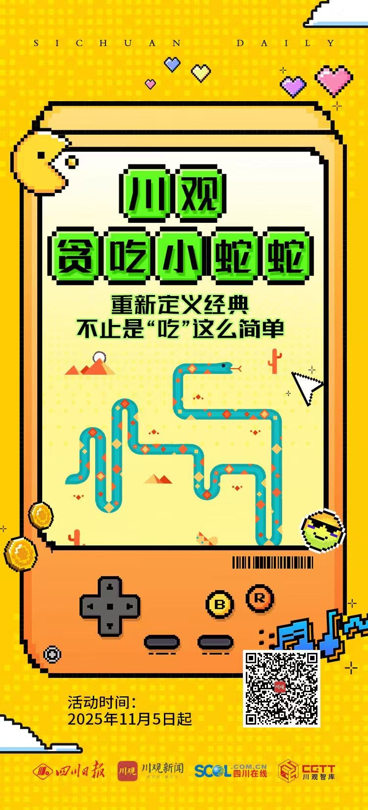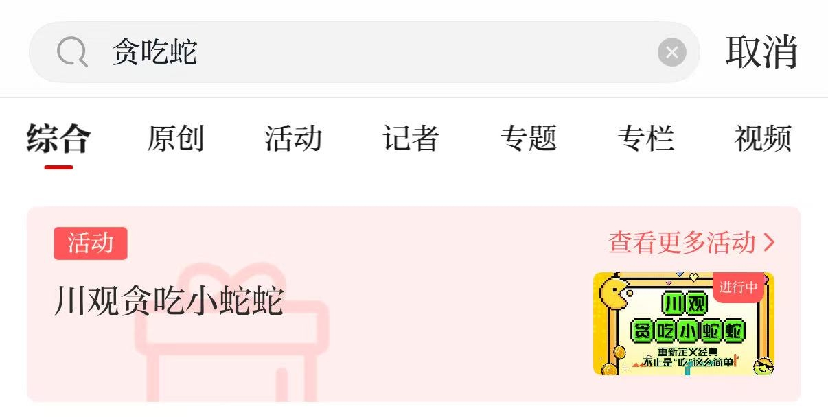 方式一:在川观新闻首页顶部搜索框输入:“贪吃蛇”,点击活动链接即可参与。