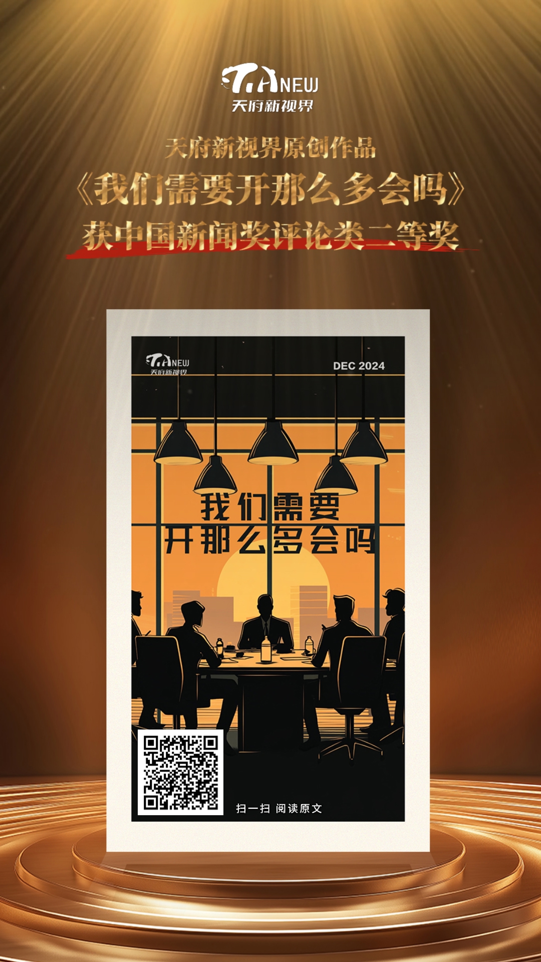 11月5日,由中华全国新闻工作者协会主办的第35届中国新闻奖评选结果揭晓。“天府新视界”微信公众号原创作品《我们需要开那么多会吗?》获得评论类二等奖。