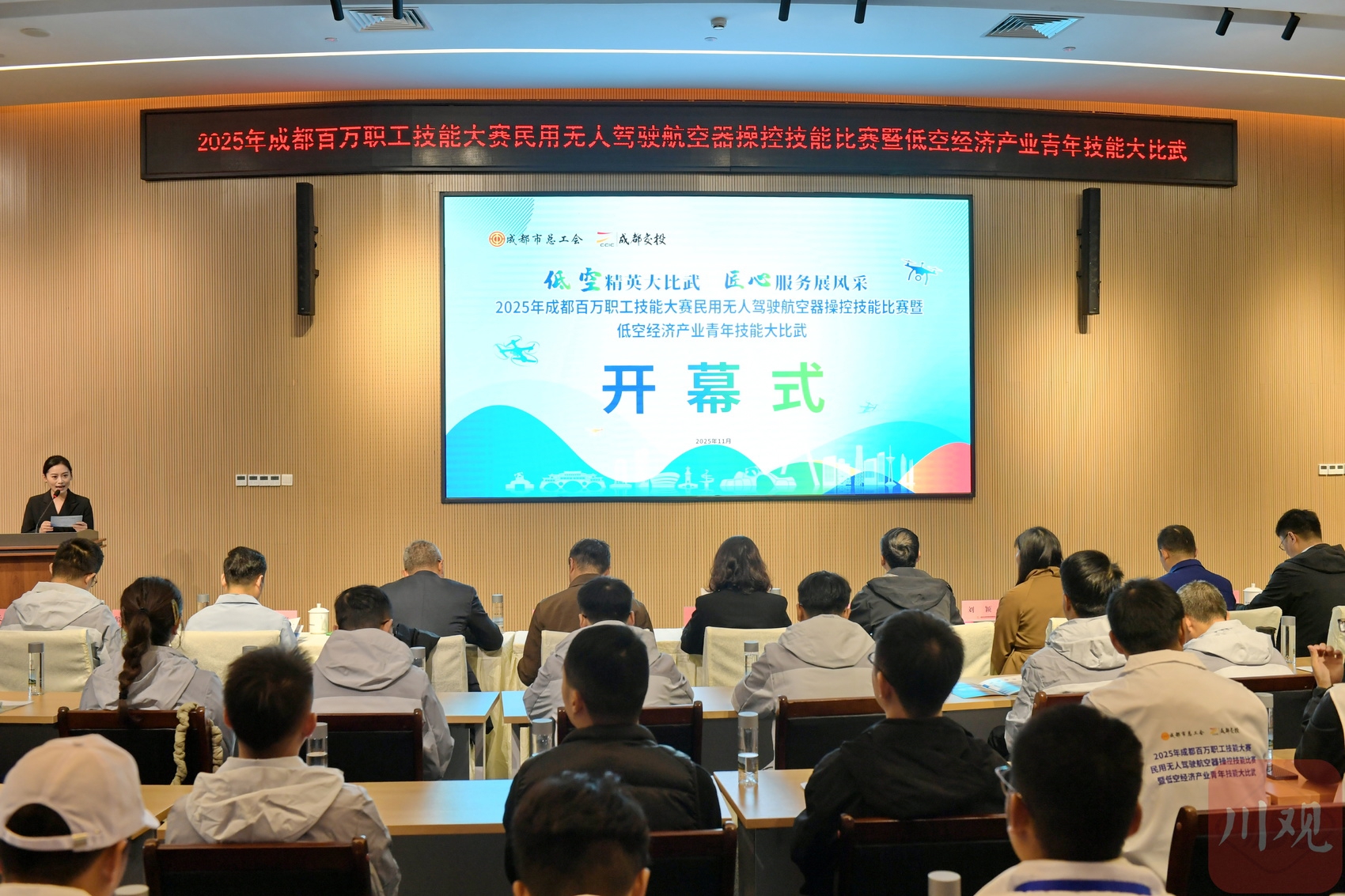 “2025年成都百万职工技能大赛民用无人驾驶航空器操控技能比赛暨低空经济青年技能大比武”在成都交投通航产业园开幕。