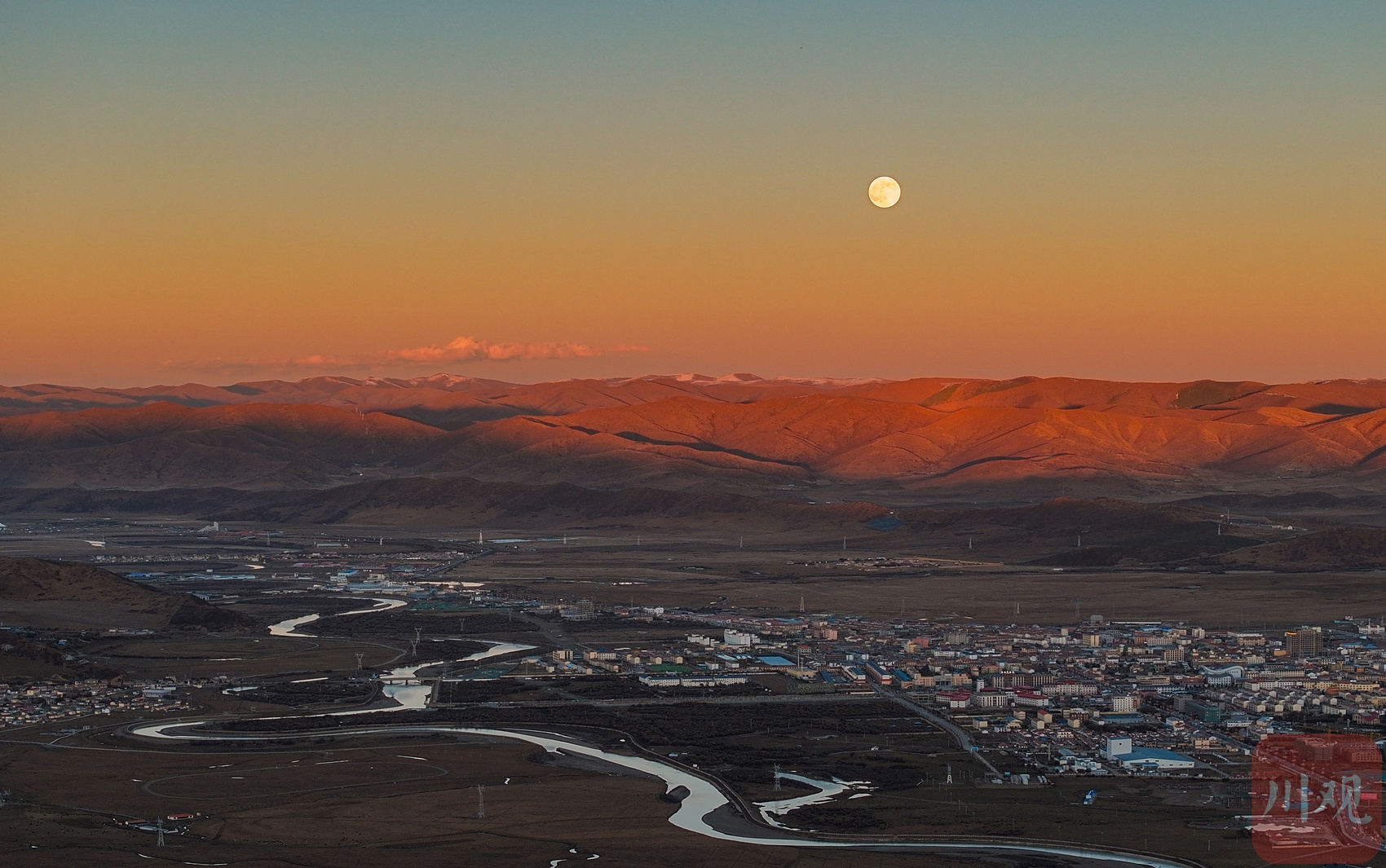 “超级月亮”现身红原县县城上空。
