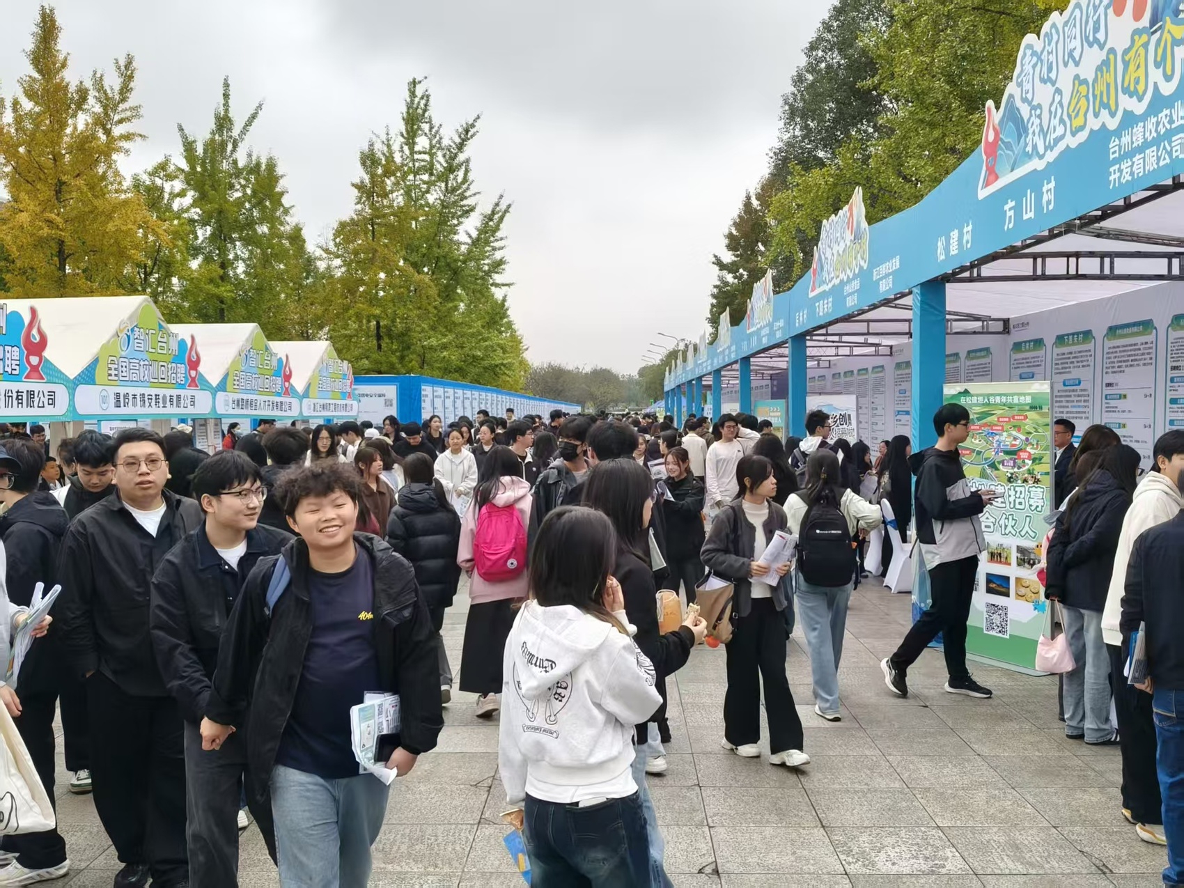 现场还设有“直播带岗”“文旅推介”等板块,并通过“我在台州有个村”主题展区,从美食、非遗和文创产品多维度展示台州魅力,提升引才亲和力和吸引力。