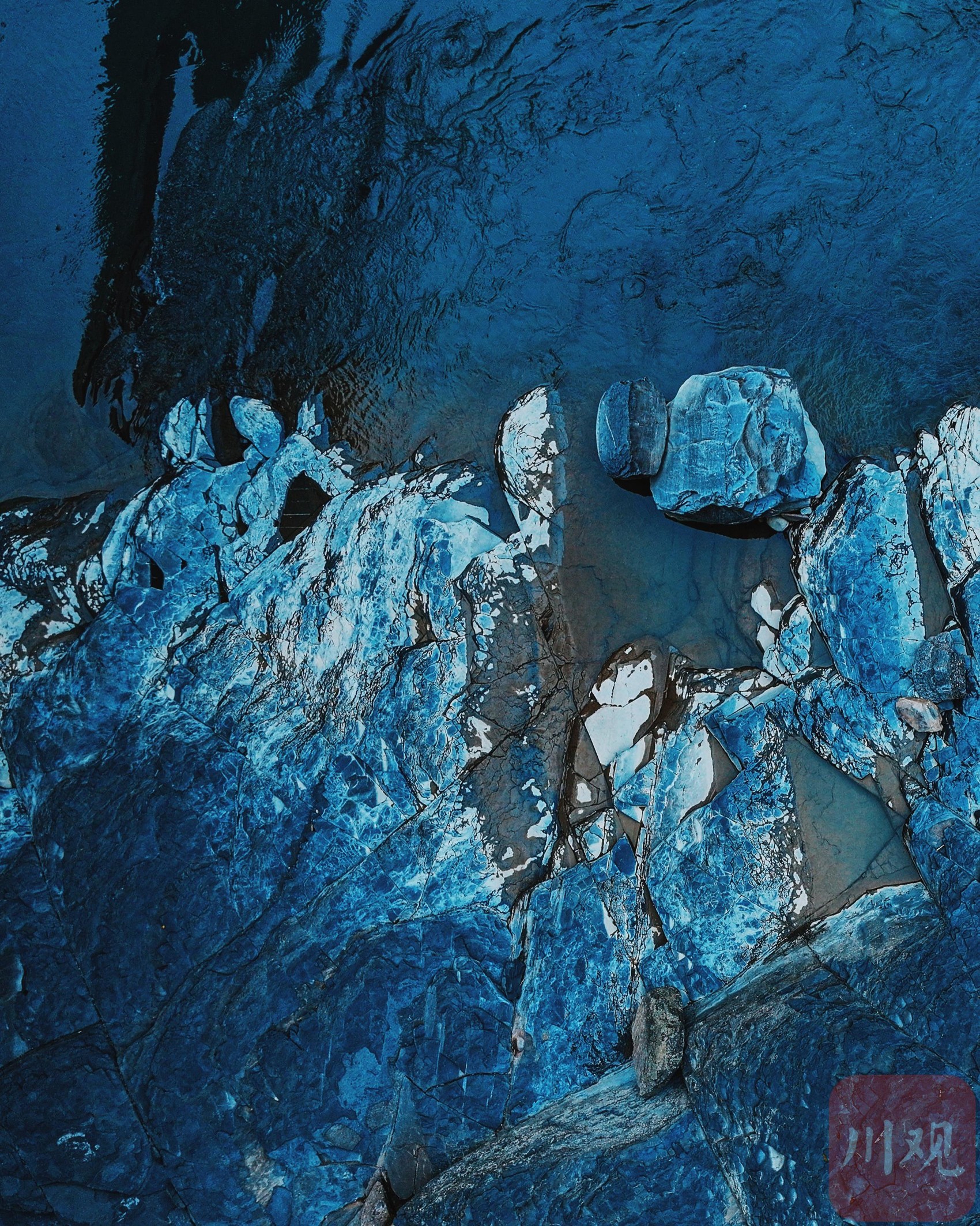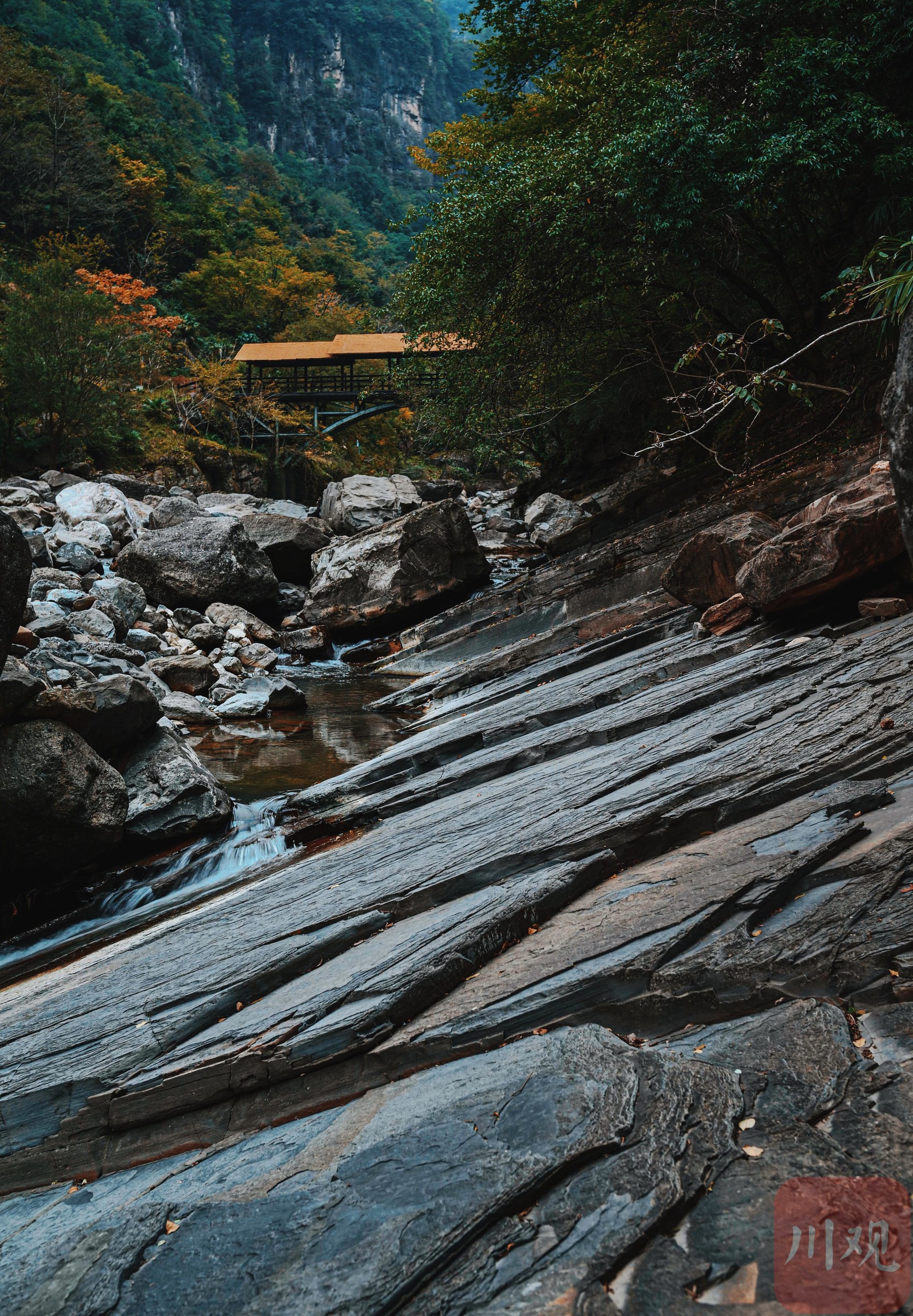11月5日,广元市旺苍县盐河镇,米仓山大峡谷的西河河床上,发现了不少水与石亿万年冲刷碰撞形成的独特地貌,让一幅幅山水画天然镶嵌于峡谷间。