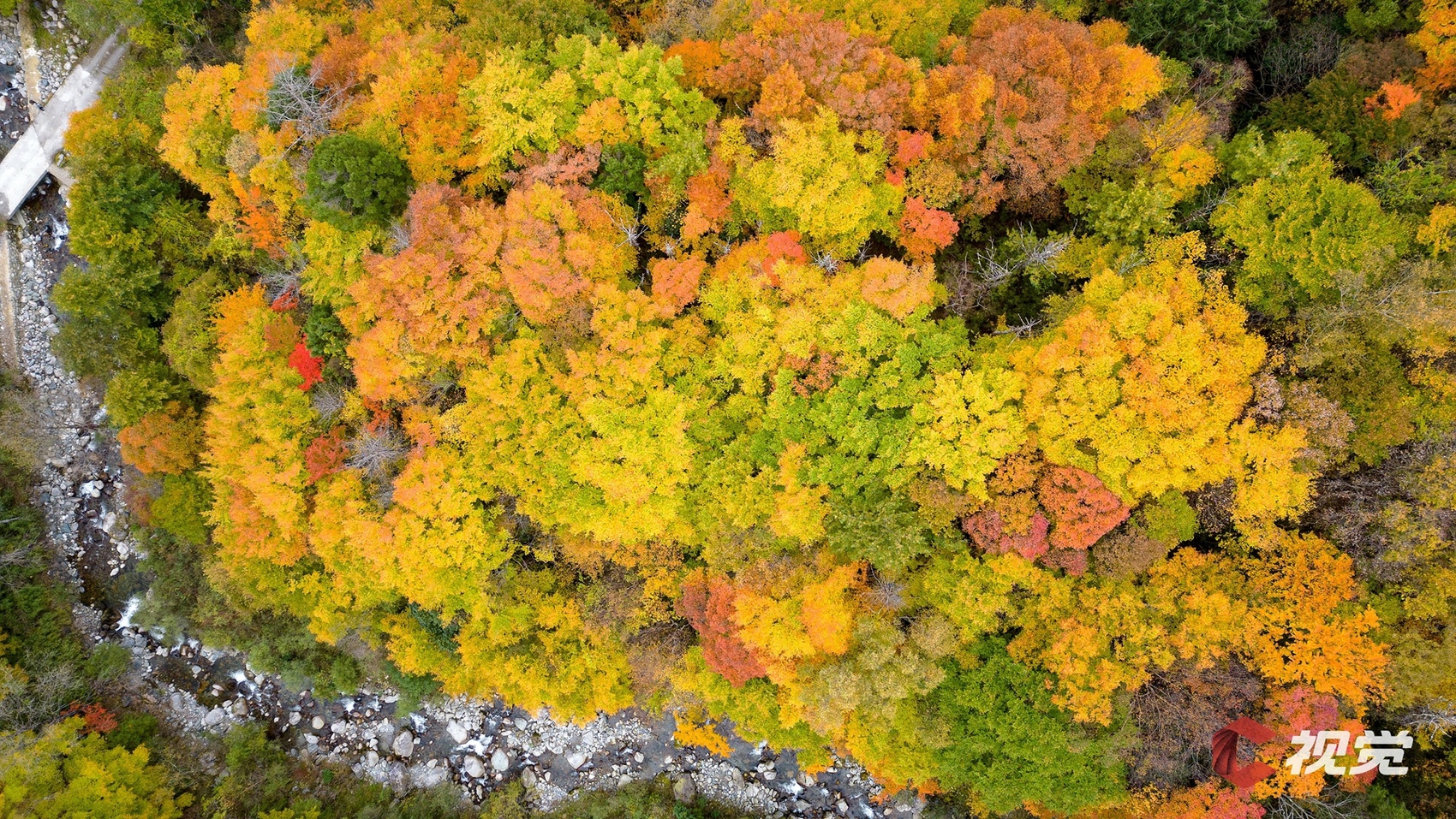 11月1日,广元市青川县唐家河进入彩林观赏期,漫山彩林如同大地的“调色盘”,美不胜收。C视觉签约摄影师 熊能 摄