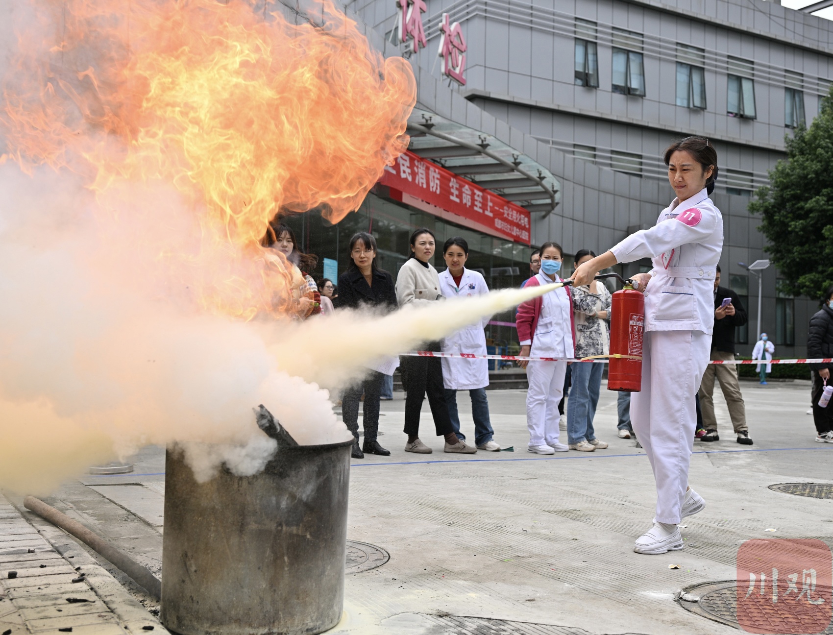 11月7日下午,在“11.9”全国消防日到来之际,成都市妇女儿童中心医院举行“全民消防 生命至上——安全用火用电”为主题的消防演练及技能竞赛活动,全院84个科室,100余人,12支队伍参加。