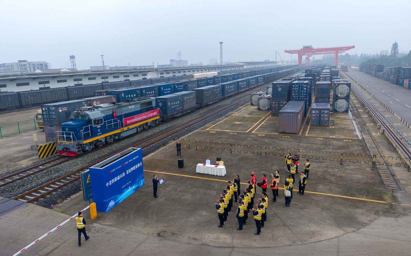 首列中老铁路进口钾肥保供专列抵达眉山。翁光建/摄