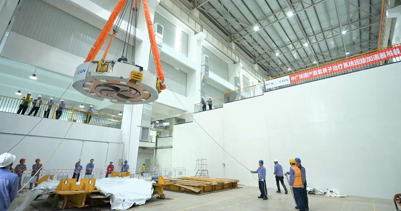 中广核国产首套质子治疗系统回旋加速器吊装(受访者提供)