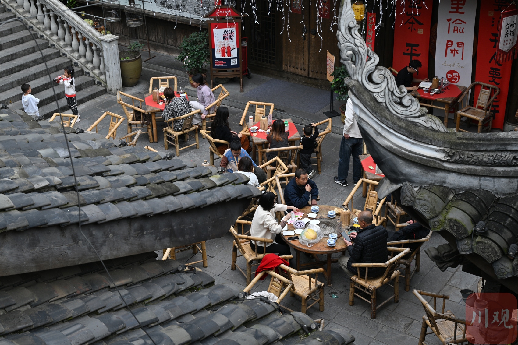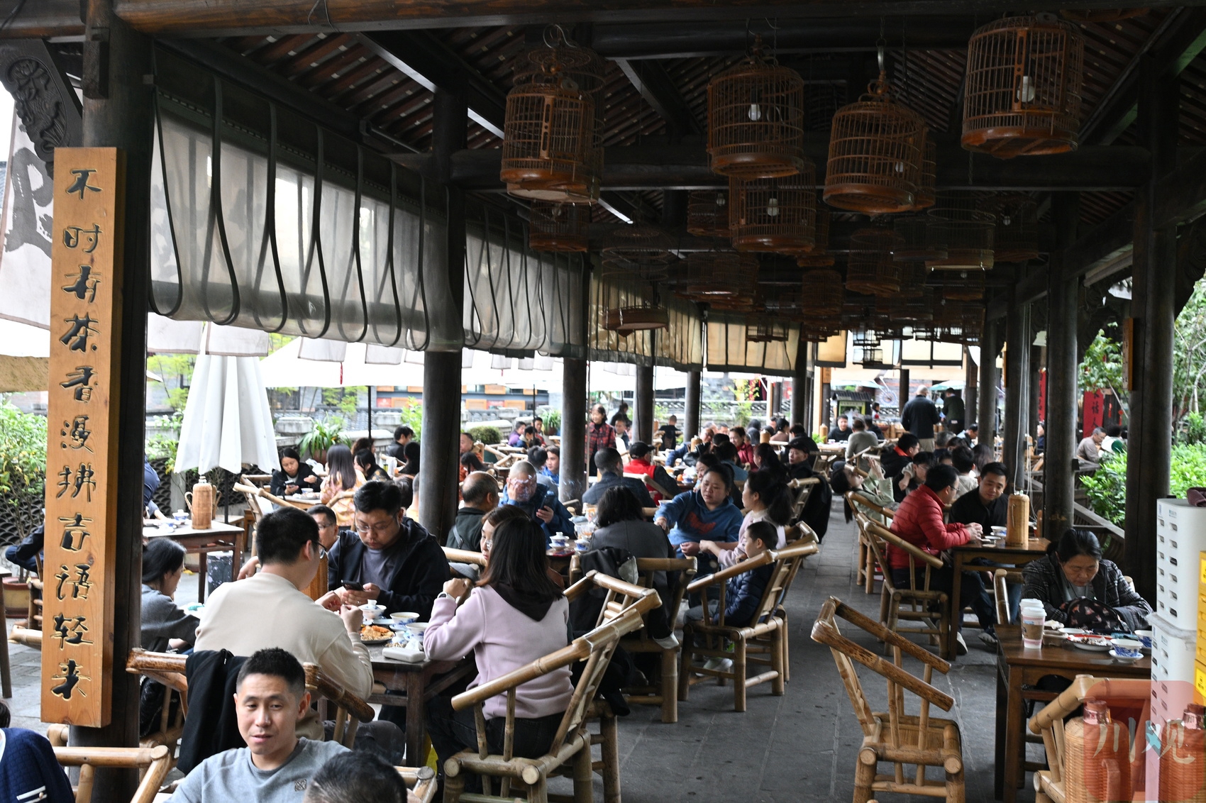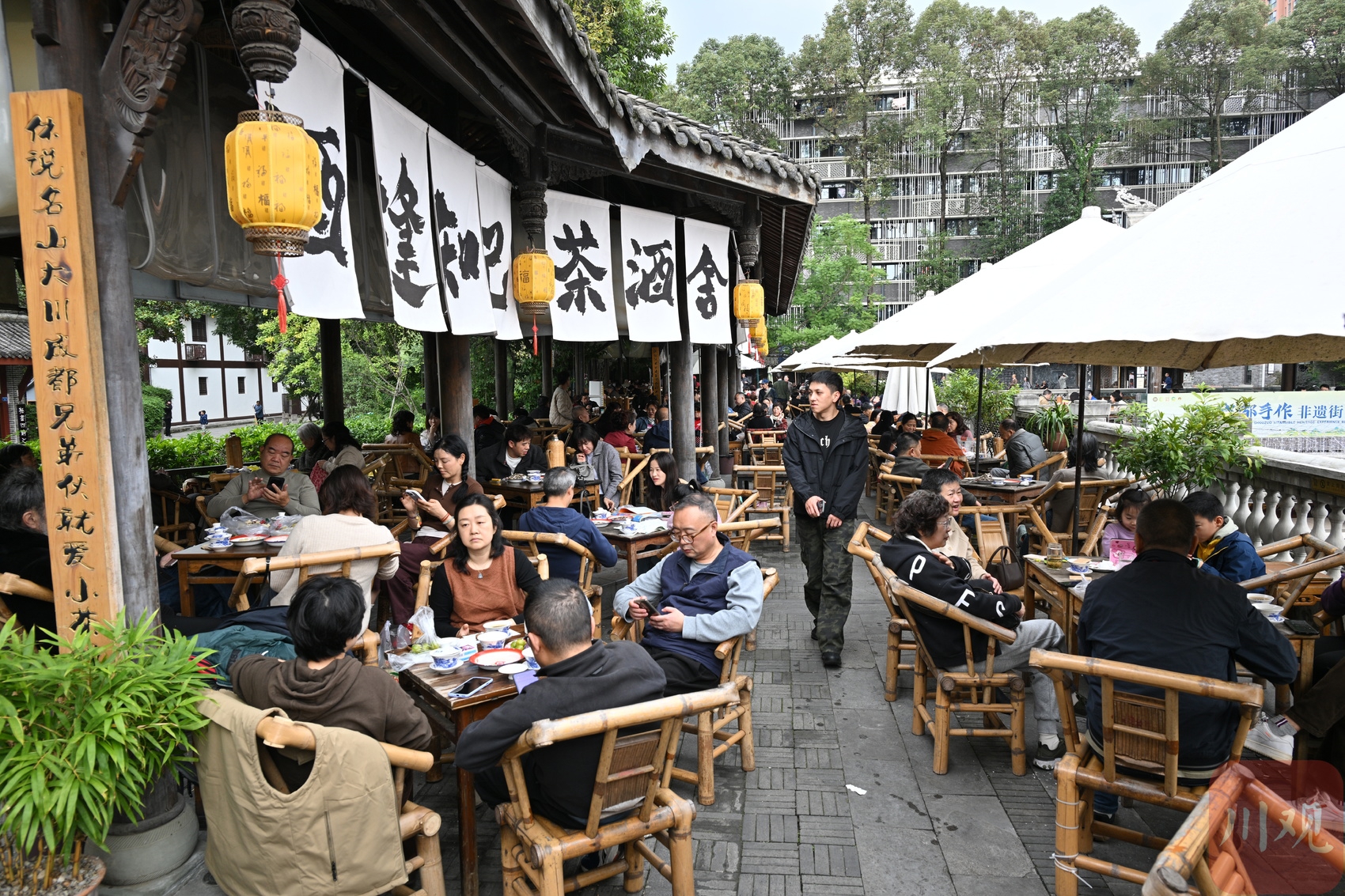 11 月 8 日下午,市民在成都东门市井喝茶聊天休闲。