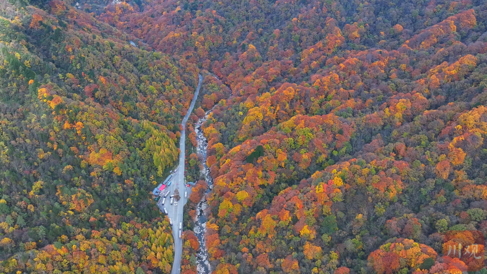 11月8日,巴中南江县米仓山,茫茫林海换上深红、橙红、金黄的彩色盛装,将山谷原野装点成一幅幅色彩斑斓的天然画卷。