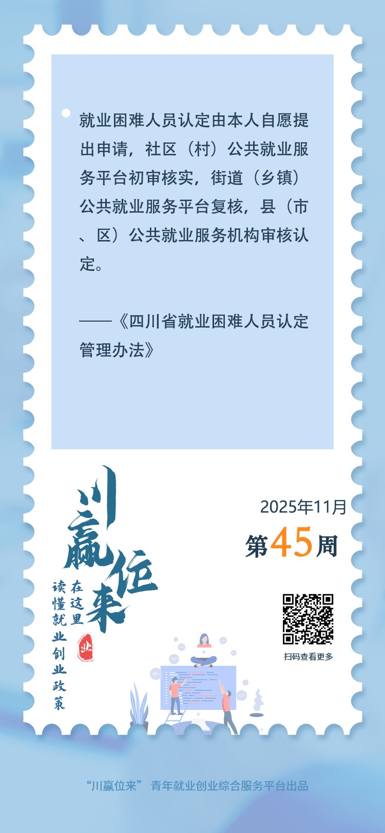 按照规定,四川省城镇区域户籍人员、城镇区域常住并参加四川基本养老保险1年以上人员中,在法定劳动年龄内有劳动能力和就业意愿,并且符合下列条件之一的登记失业人员,可以申请认定为就业困难人员——