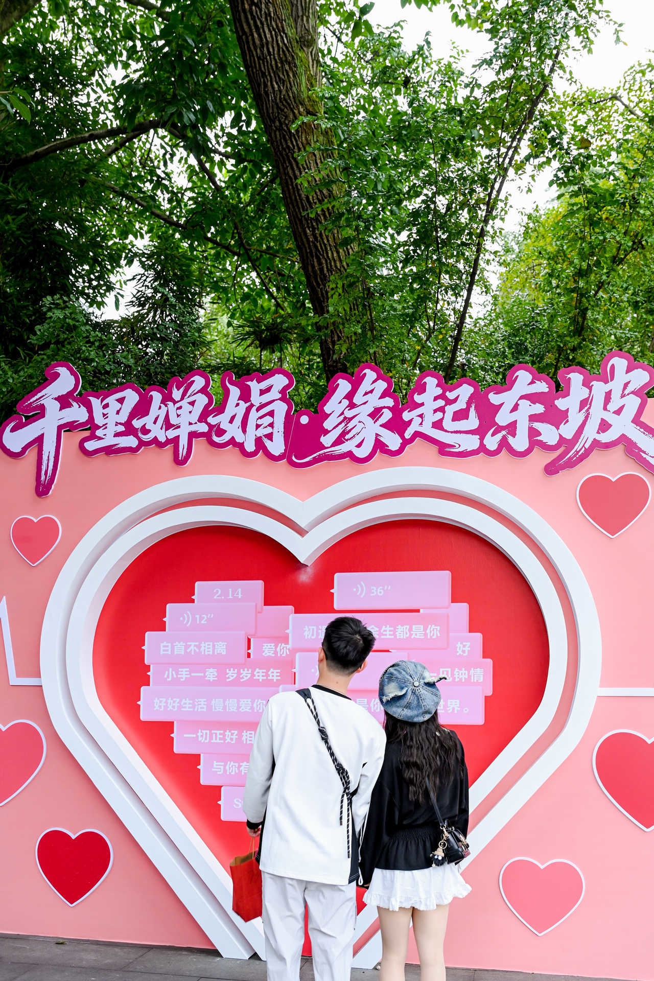 “活动深度挖掘东坡文化内涵,精心策划了一系列特色体验线路。”眉山市文化广播电视和旅游局相关负责人介绍。活动期间,爱侣们可根据“东坡爱情地图”指引,在三苏祠书写“穿越时光的情书”,在四川老坛子食品有限公司封存“爱的味道”,在青神中岩寺重走东坡初恋之路,在丹棱幸福古村研磨“爱情的香甜”,在老峨山云海之巅倾诉爱的誓言……“这些线路巧妙融合了东坡文化与现代情感需求,为爱侣们营造独特的浪漫体验。”