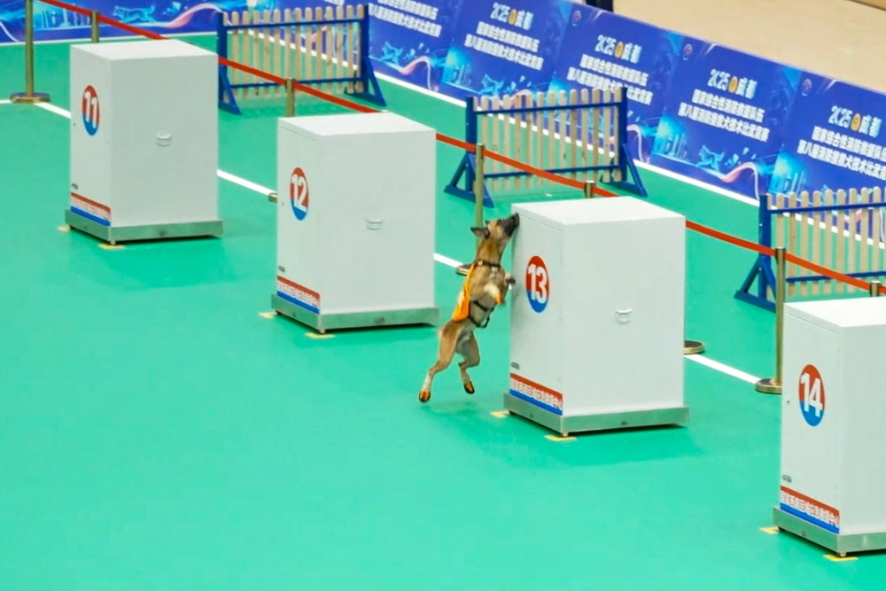 训导员武雨昕见证了“闪电”从一只普通犬到“赛季水准”选手的蜕变。他回忆,在平时的训练中,就发现“闪电”的嗅觉很灵敏,尤其是对箱体搜救这个科目很感兴趣又擅长,于是他就针对性地对“闪电”进行箱体搜救的训练。