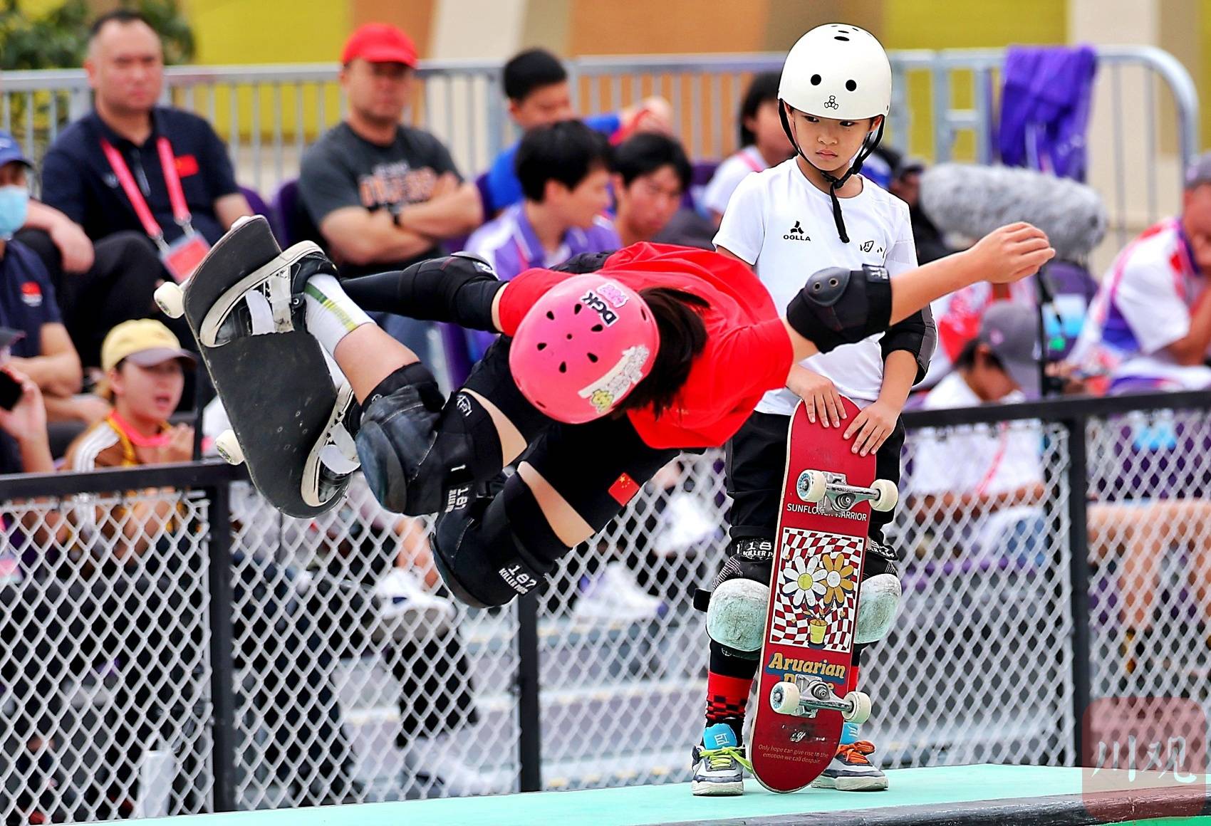 11月10日,第十五届全国运动会滑板女子碗池半决赛在广东惠州开赛,来自四川成都的9岁零5个月小将宋昂媞亮相赛场,成为本届赛事备受关注的年轻选手之一。这位就读于成都市泡桐树小学(天府校区)的“小孩姐”,也完成了自己的全运首秀。