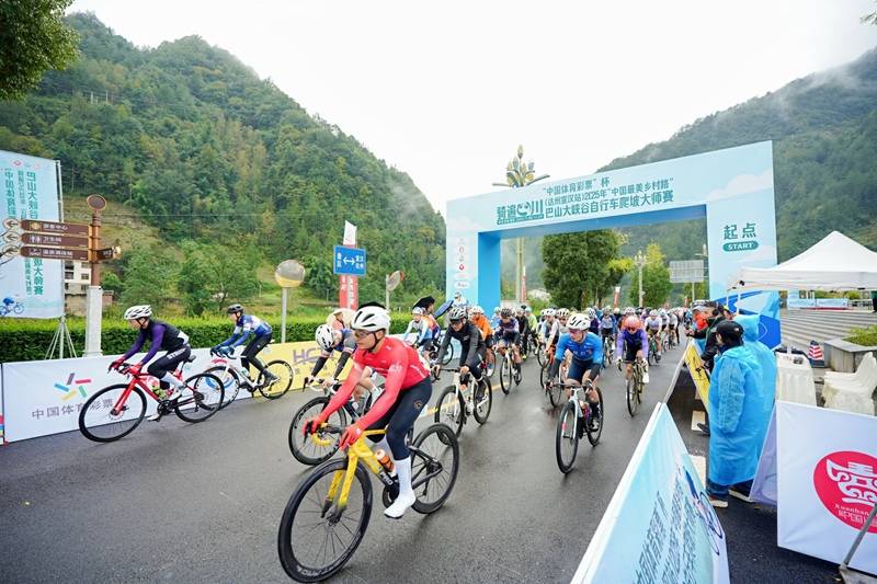 11月9日,“中国体育彩票”杯骑遍四川(达州·宣汉站)2025年“中国最美乡村路”巴山大峡谷自行车爬坡大师赛在四川省达州市宣汉县巴山大峡谷景区拉开帷幕。来自国内外的骑行爱好者齐聚宣汉,展开了一场融合速度、耐力与山水之美的竞技盛宴。