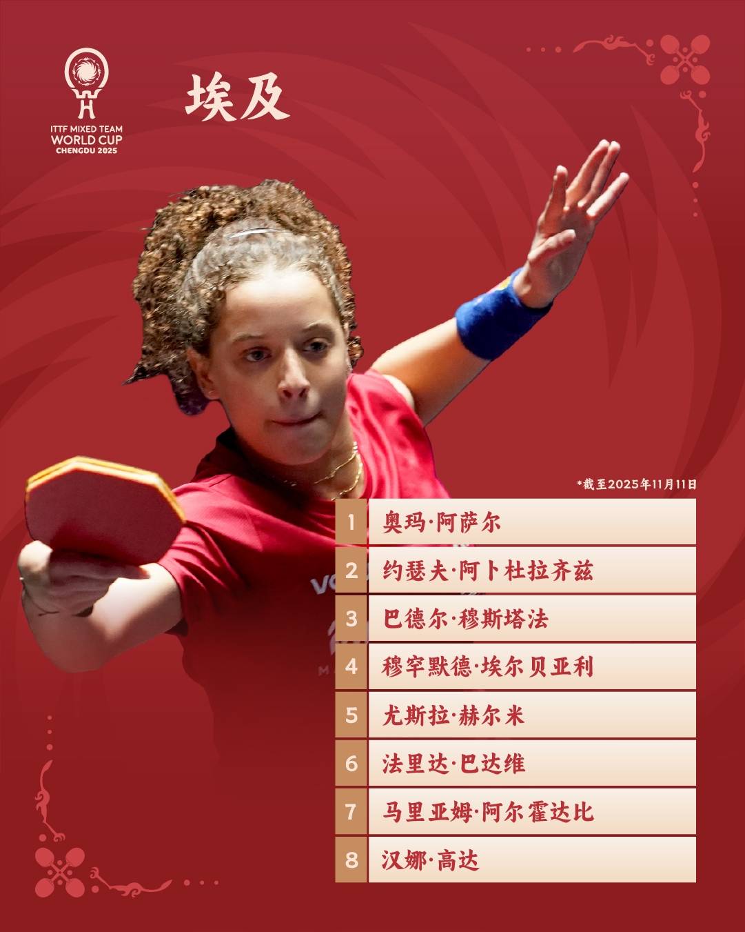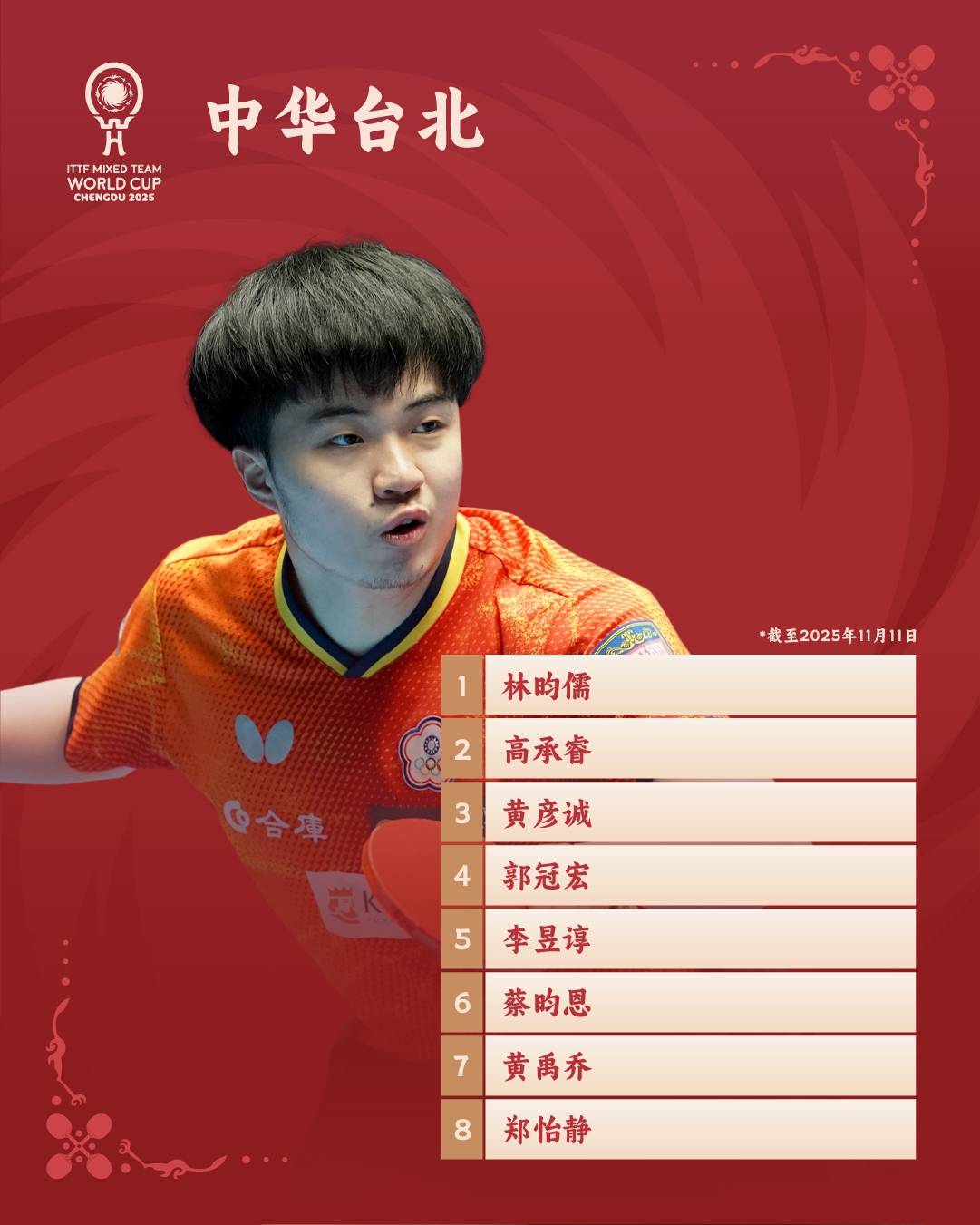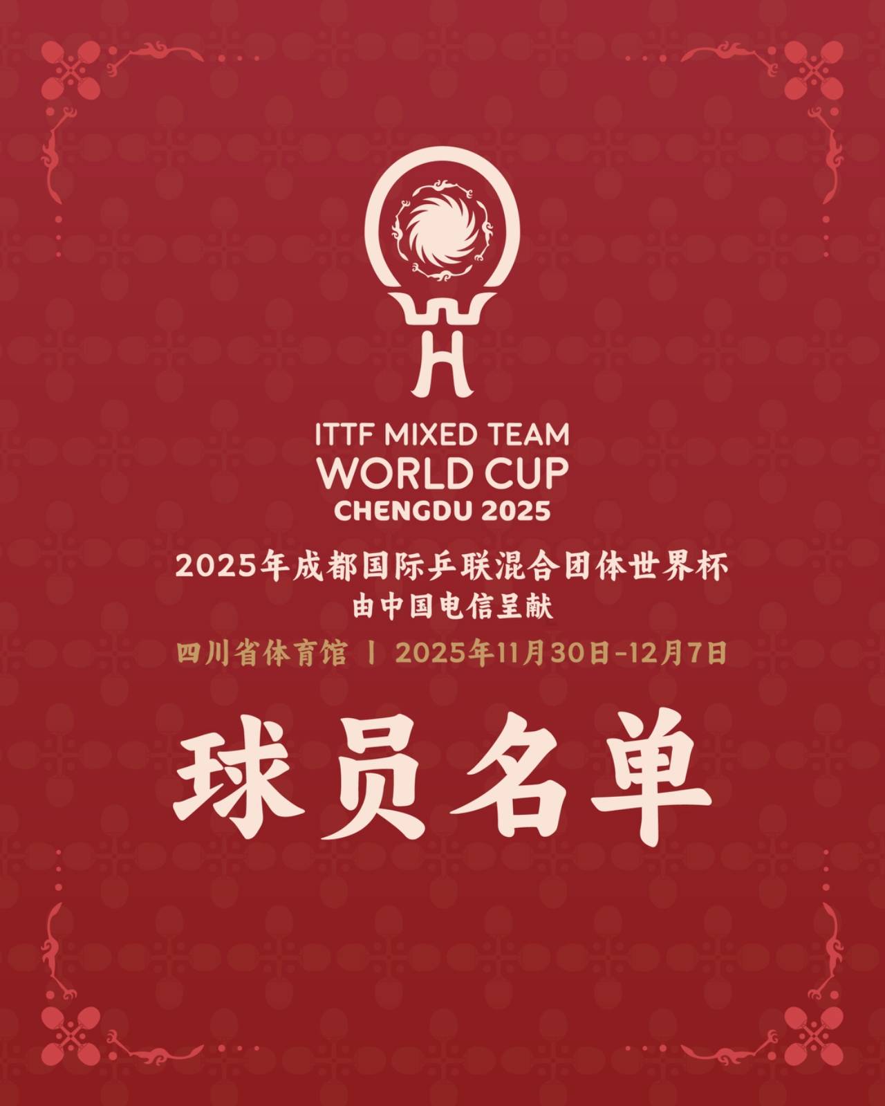 2025年成都国际乒联混合团体世界杯将于11月30日至12月7日在成都举行,冠军队将获得2500点世界排名积分。国际乒乓球联合会(ITTF)于今日正式公布参赛球员名单: