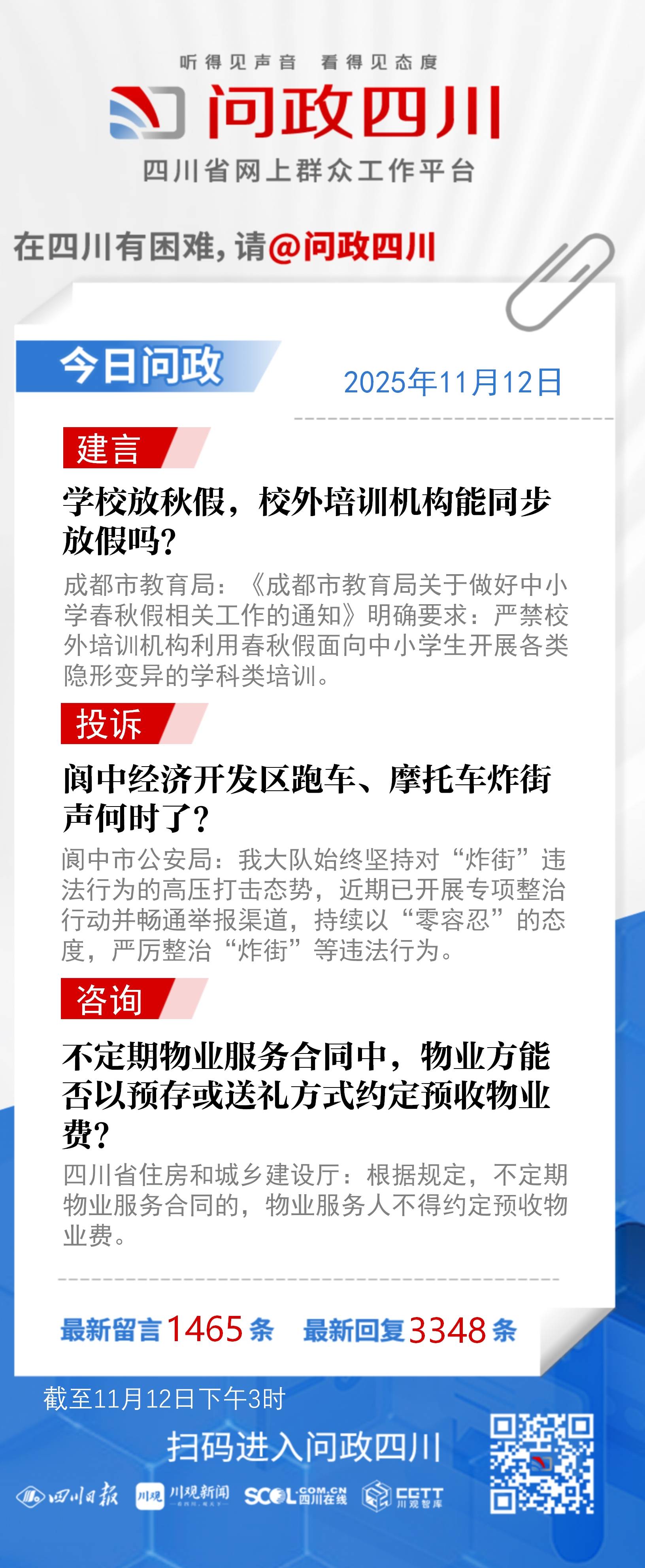 问政四川网友提问:成都各个学校陆续发布通知响应秋假,但学而思、新东方一类校外培训机构并没有拿出放假对策,也无法调课。此类校外培训机构能严格按照秋假的规定与学校同步放假吗?