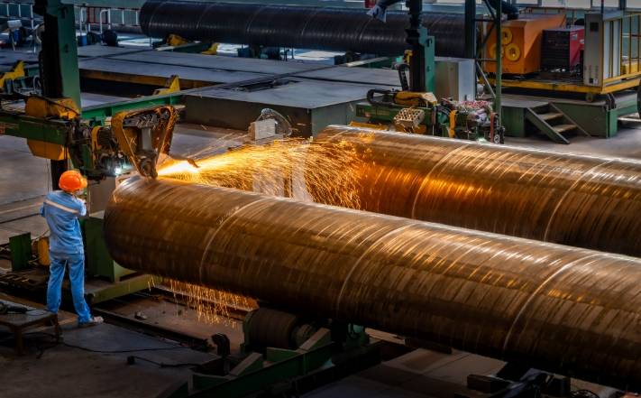 资阳石油钢管有限公司螺旋管产品管端加工中。龚赞 摄