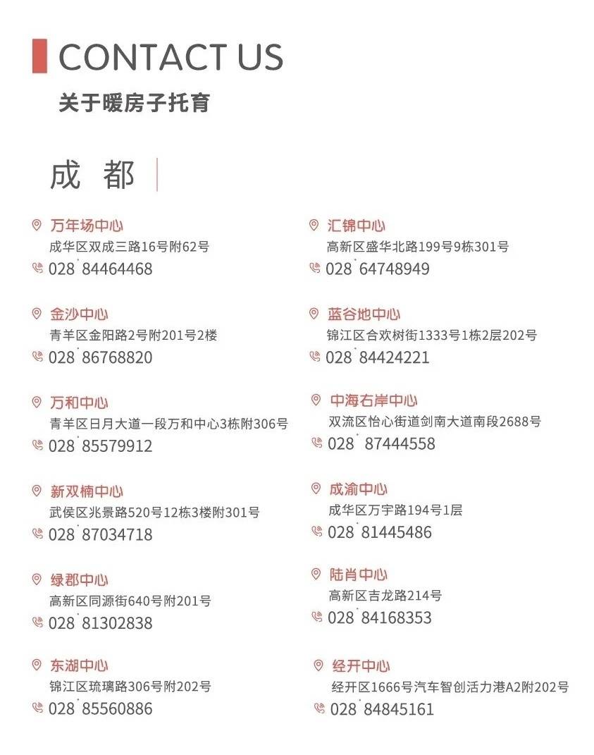 暖房子在成都的各个中心。图据暖房子托育公众号