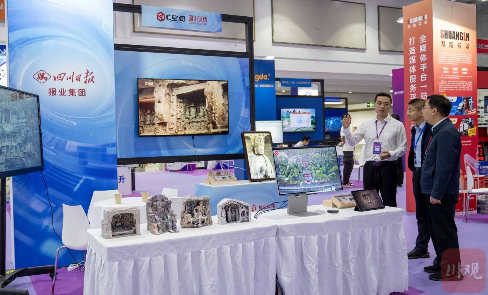 不时有参会嘉宾来到展区,被3D打印、等比例还原的精美石窟造像吸引,洽谈合作机会。“科技+传媒+文化”深度融合,正在为变革中的川报集团带来更多新的机遇。