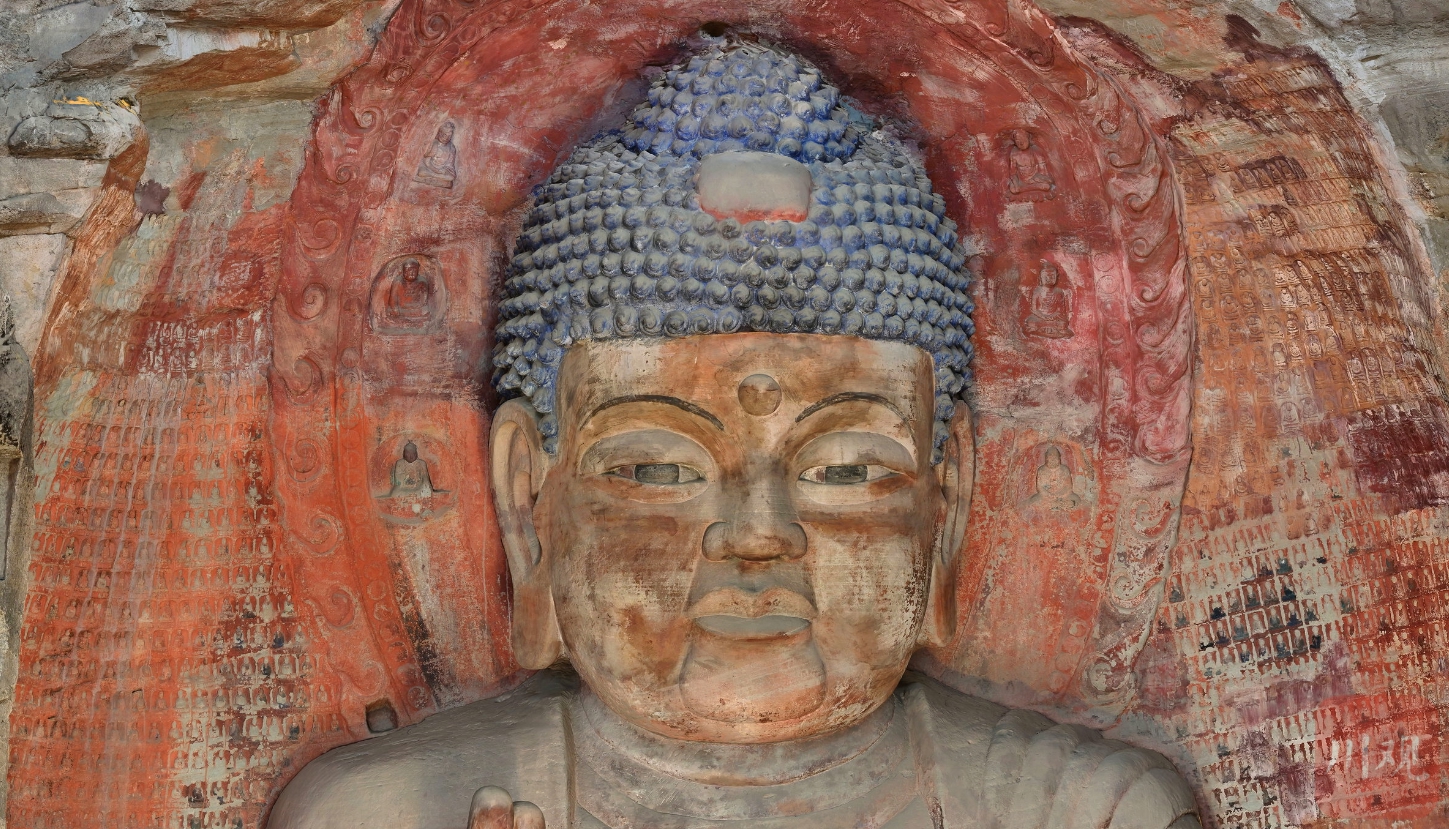 大像山位于嘉陵江转折处,与阆中古城隔江相望,山脚下是昔日的渡口码头。山崖上,人们开凿出近十米高的大佛,静守江流、祈愿平安。如今往来游人取代了商客匆匆,大佛却仍坚守在“潮流”前沿。它面颊丰润,眼神灵动,右手两指并立,定格为佛生照片的经典姿势。在它身后,4000多尊约10厘米高的“迷你佛”列队两侧,堪称最佳氛围组。