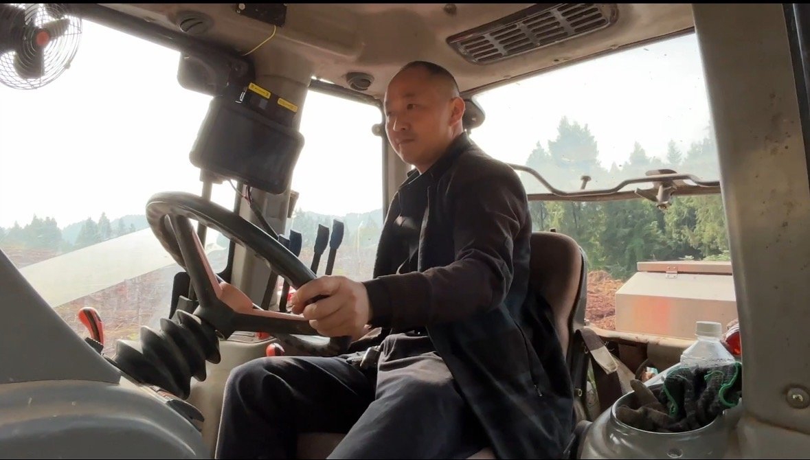 11月13日,南充市蓬安县相如街道一刚整理出来的撂荒地里,康志钢正在操作农机作业。 摄影:李文星
