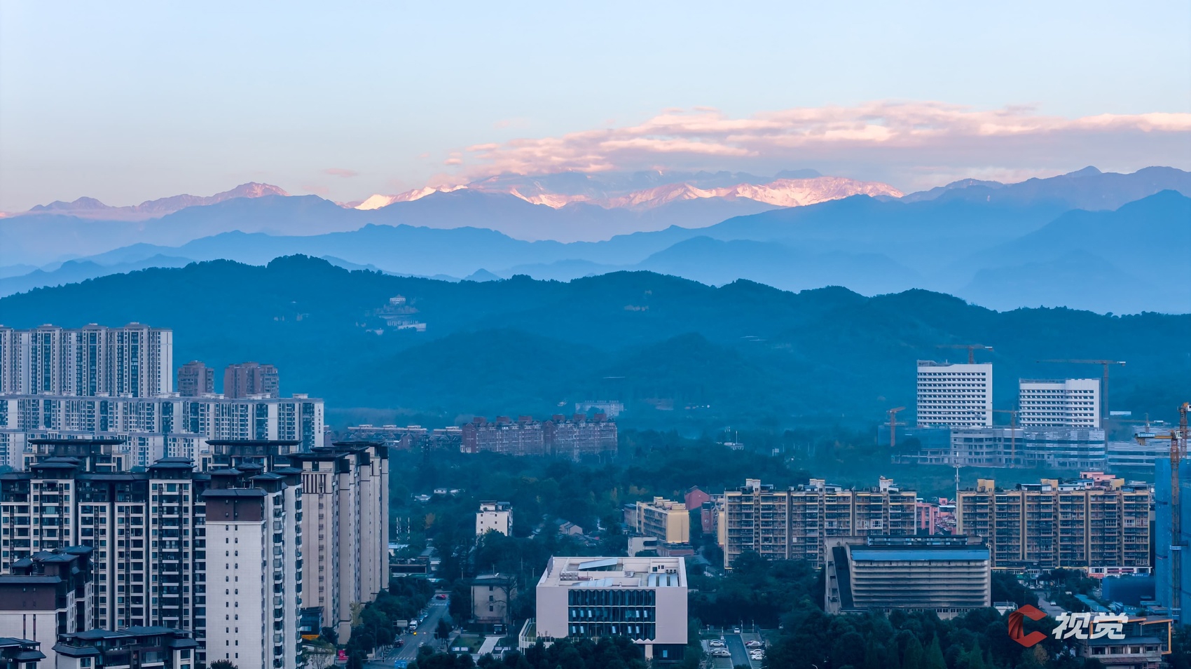 2025年11月15日清晨时分,厚重的云层逐渐散去,久违的冬日暖阳洒向成都,让这座阴了许多天的城市焕发生机。而在成都温江区、都江堰、崇州和大邑的市民们,则再一次刷新“推窗见雪山”惊喜体验,在这难得的秋冬“追山季”,白雪皑皑的雪峰立于云端之上,被暖阳笼罩着的城市与乡村构成了一幅生态美景图。