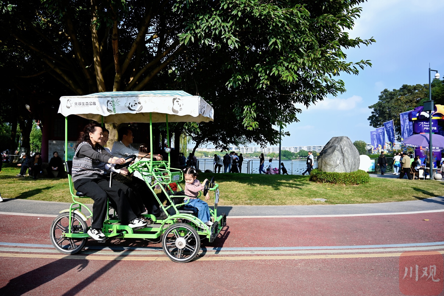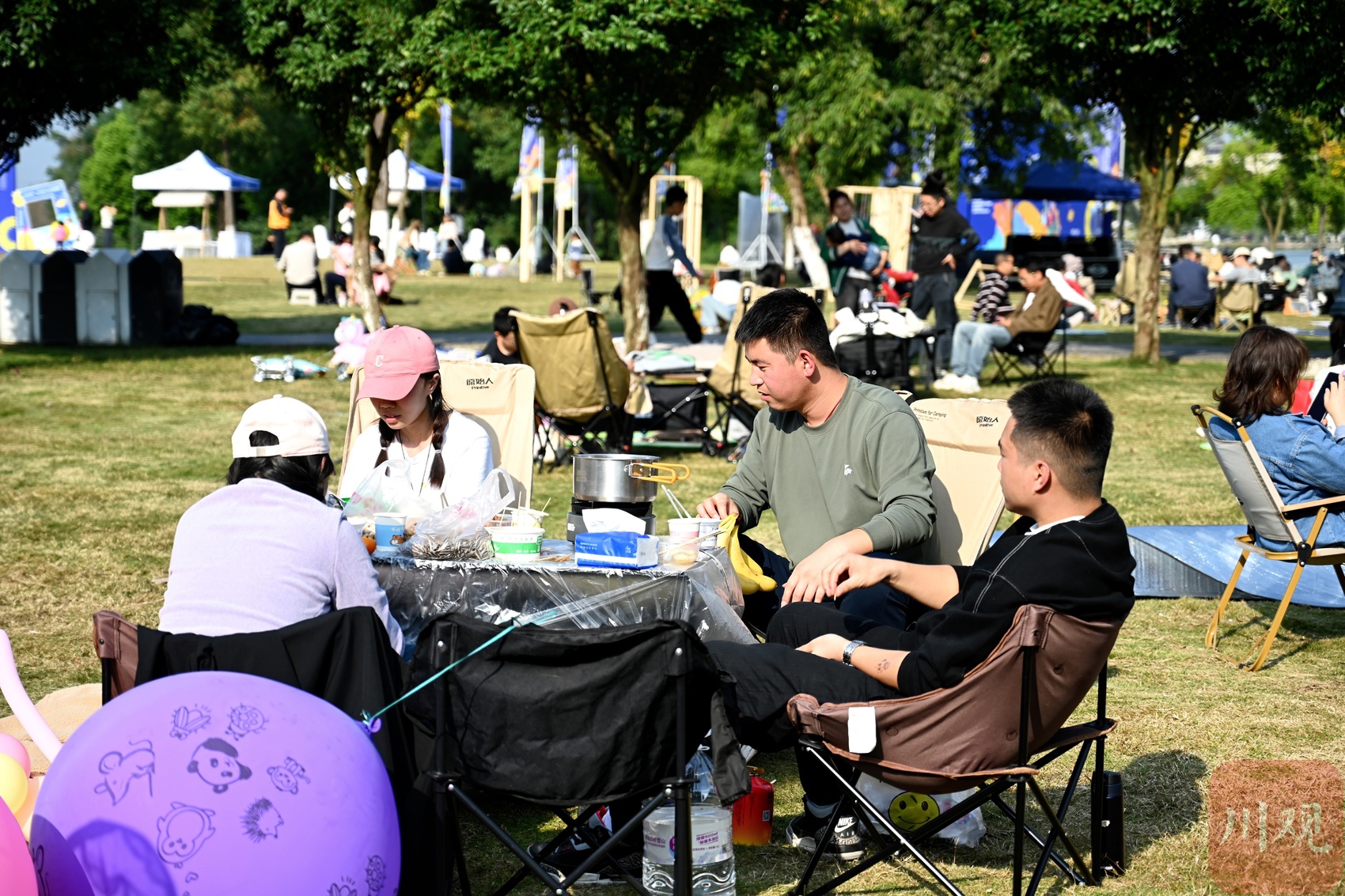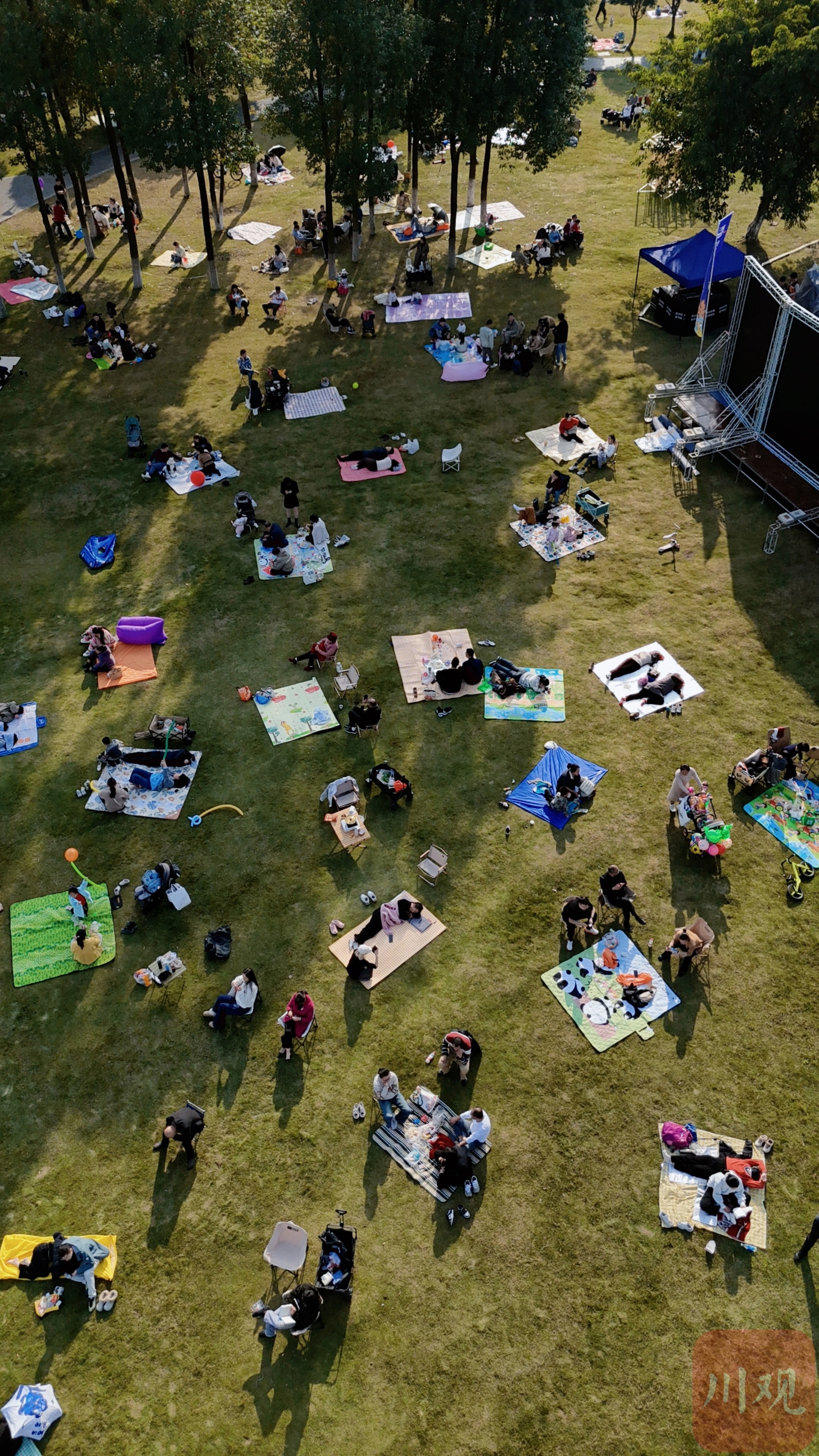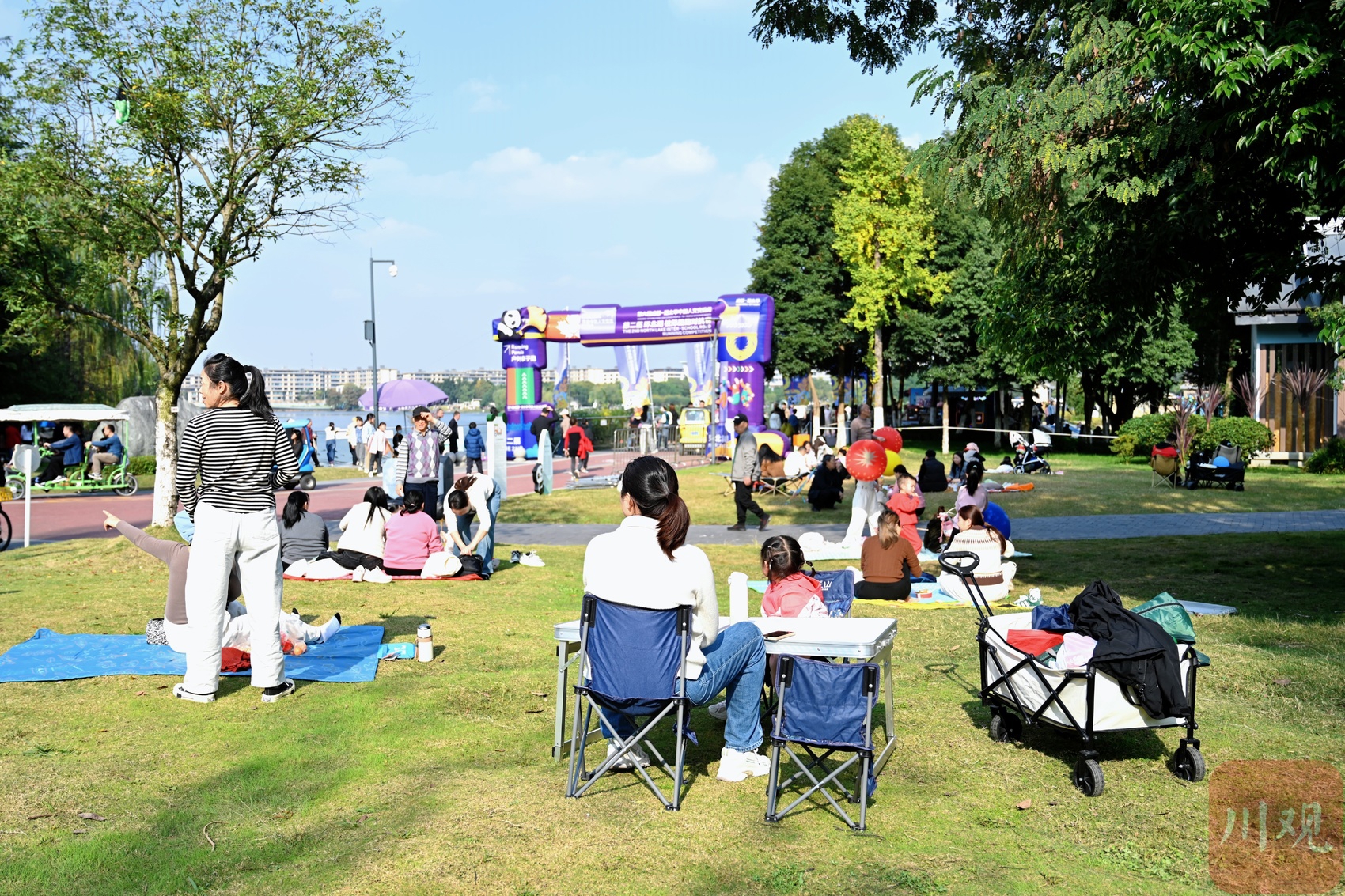 11月15日,成都天空放晴,阳光温暖明媚,气温攀升到了20°C。悠闲的周末时光,市民纷纷走出家门晒太阳,享受难得的“日光浴”。在北湖生态公园的草坪上,大家席地而坐,开启露营模式,洋溢着轻松与欢乐的氛围。