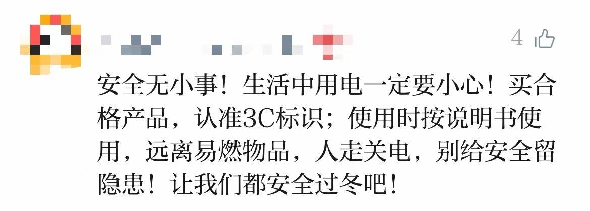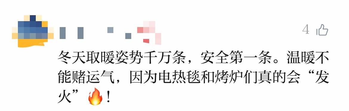 有网友表示,冬天取暖不能赌运气,因为电热毯和烤炉会“发火”↓