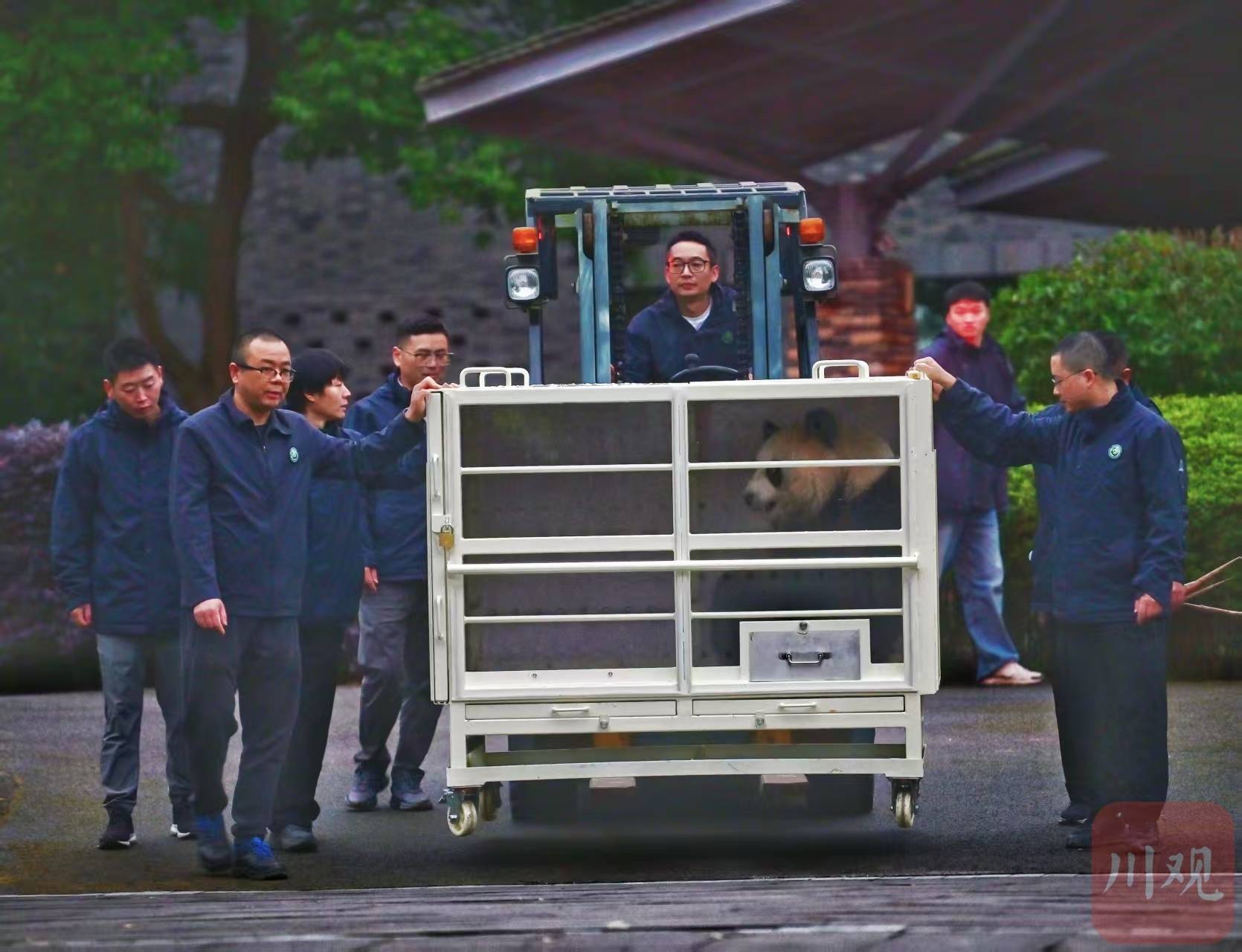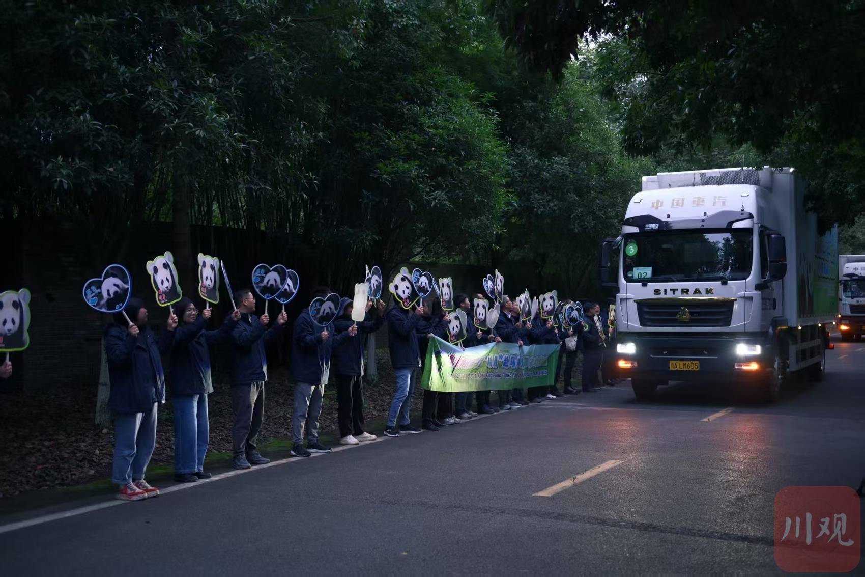 转运车从中国大熊猫保护研究中心都江堰基地出发