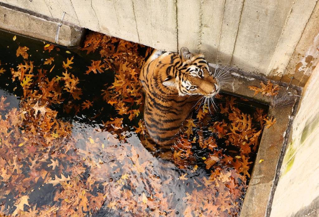 这是11月17日在美国华盛顿国家动物园拍摄的老虎。