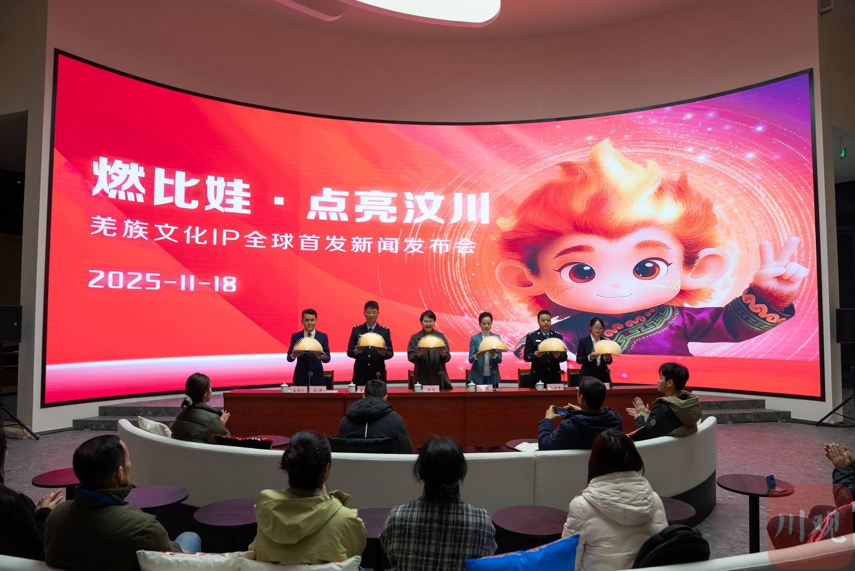 11月18日,汶川县联动中国传媒大学中国大型活动创制设计研究中心在汶川县映秀镇正式发布“燃比娃”IP形象。据中国传媒大学戏剧影视学院院长郑月介绍,此项目是该校与汶川县深度校地合作的成果,旨在对羌族优秀传统文化进行创造性转化与创新性发展。团队组建近百人专项组,历时53天深入调研羌族文化,系统研究英雄传说,并运用艺术与科技手段,打造出既保留传统纹样色彩、又兼具现代审美与治愈力的视觉形象。