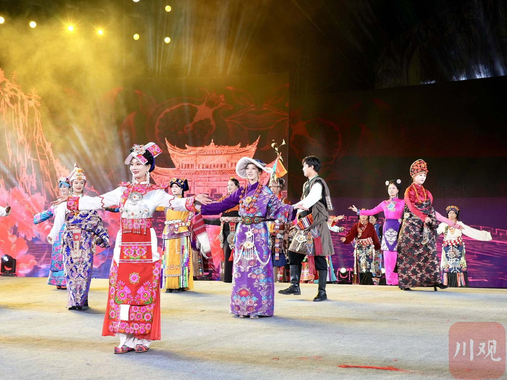“一览吾遗”沉浸式夜游活动文艺晚会,演员们表演《了不起的阿坝非遗》。