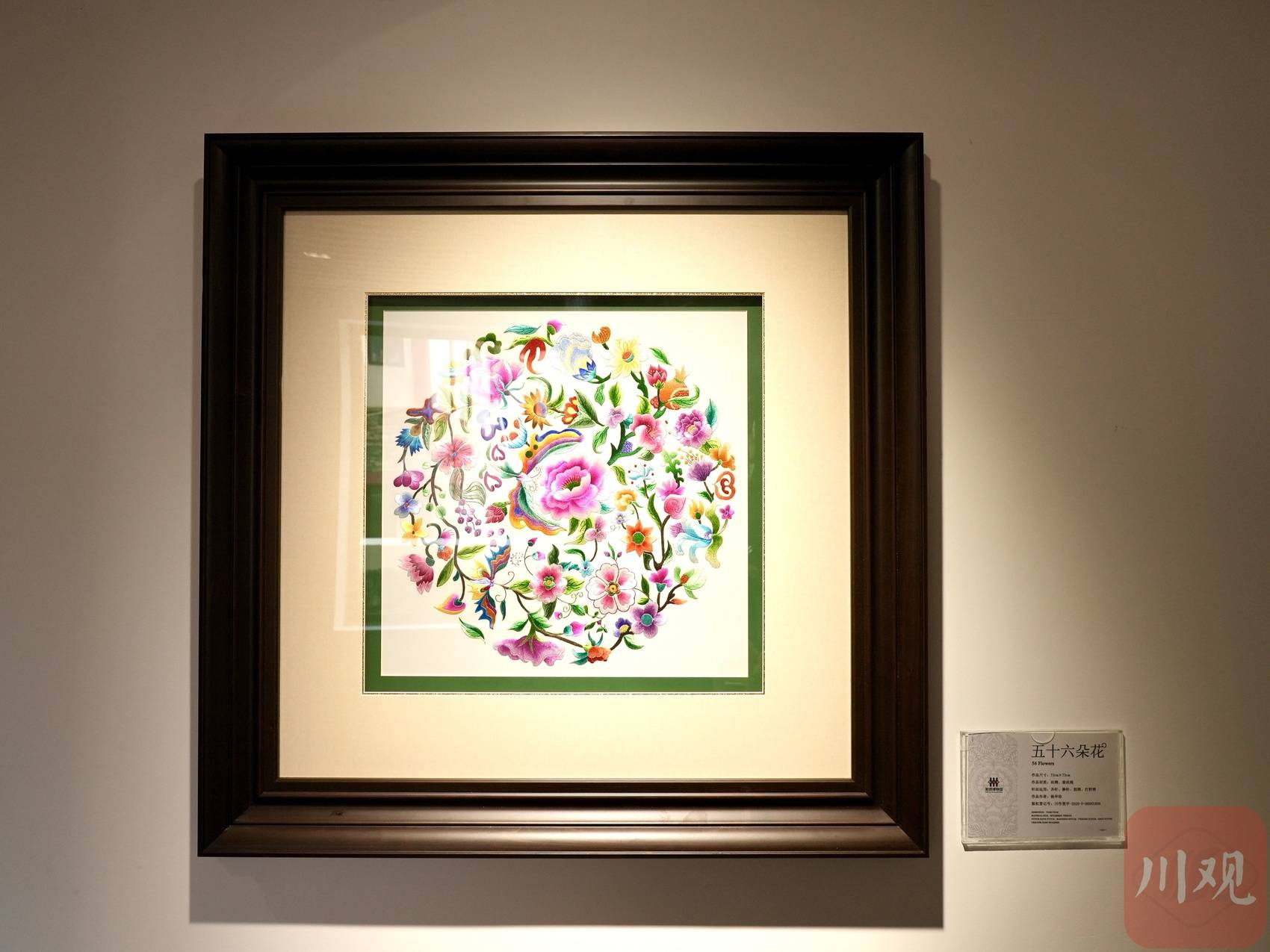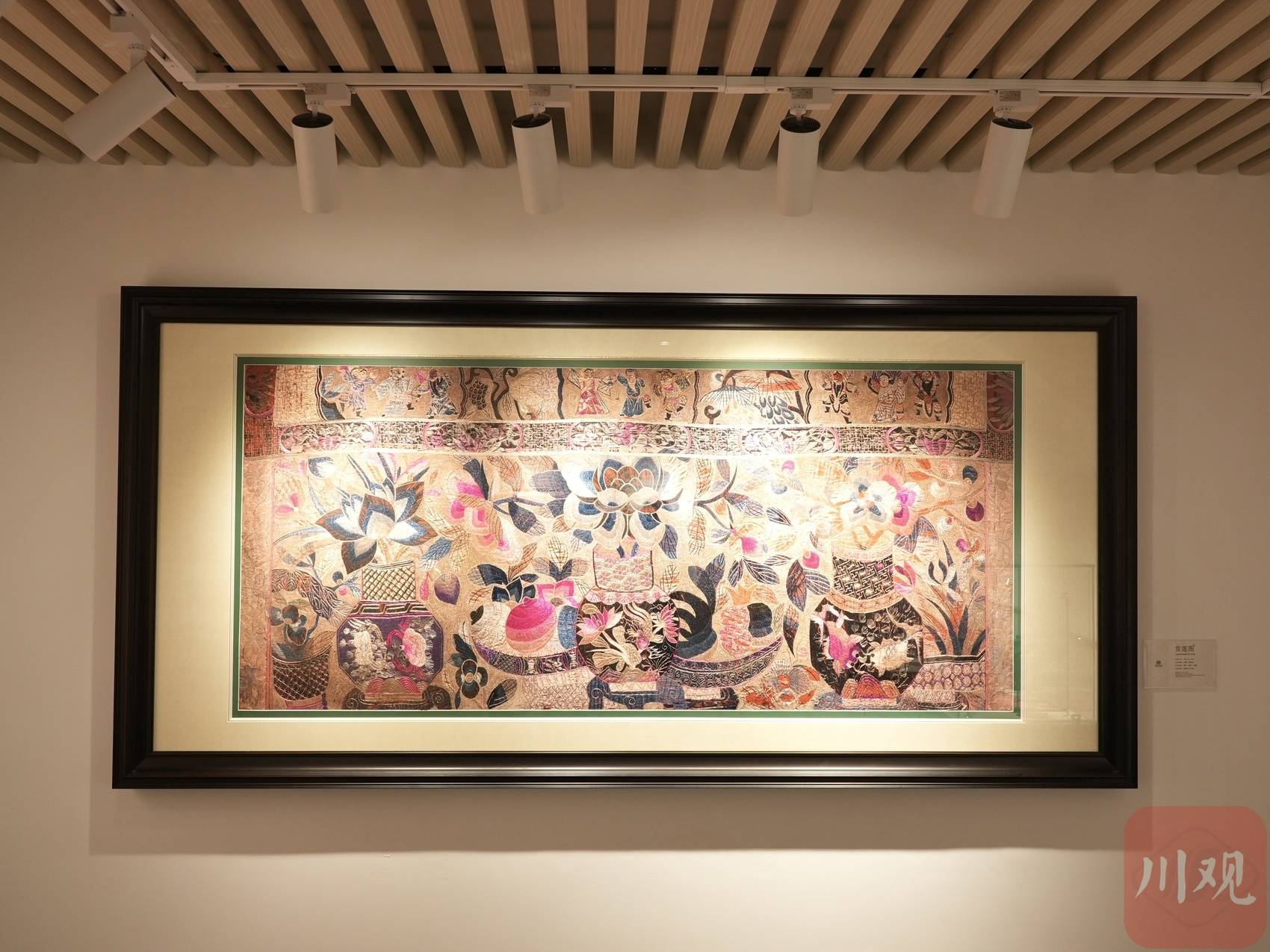 博物馆内展出的约400年历史的羌绣作品《赏莲图》。