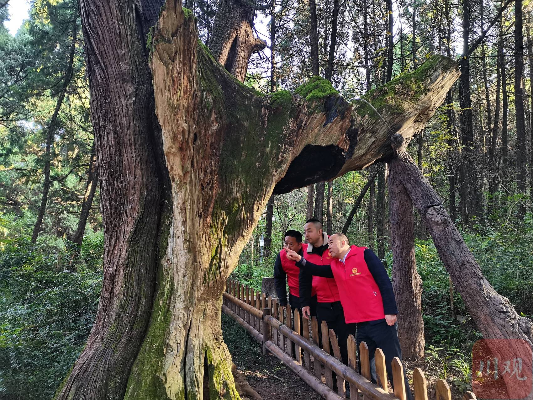 这项制度化的守护,在实践中展现出速度与温度。今年3月,队员郭骏在日常巡逻中发现一株古柏枝干枯萎、树叶稀疏。“这是古柏生命衰微的信号。”郭骏发现濒危古柏后,迅速上报相关部门,剑阁县古柏保护中心专家立即抵达现场,诊断、输液、涂保护层……专业救护一气呵成。“从发现到救治完成,24小时内响应处置,这就是老兵速度!”郭骏的语气充满自豪。