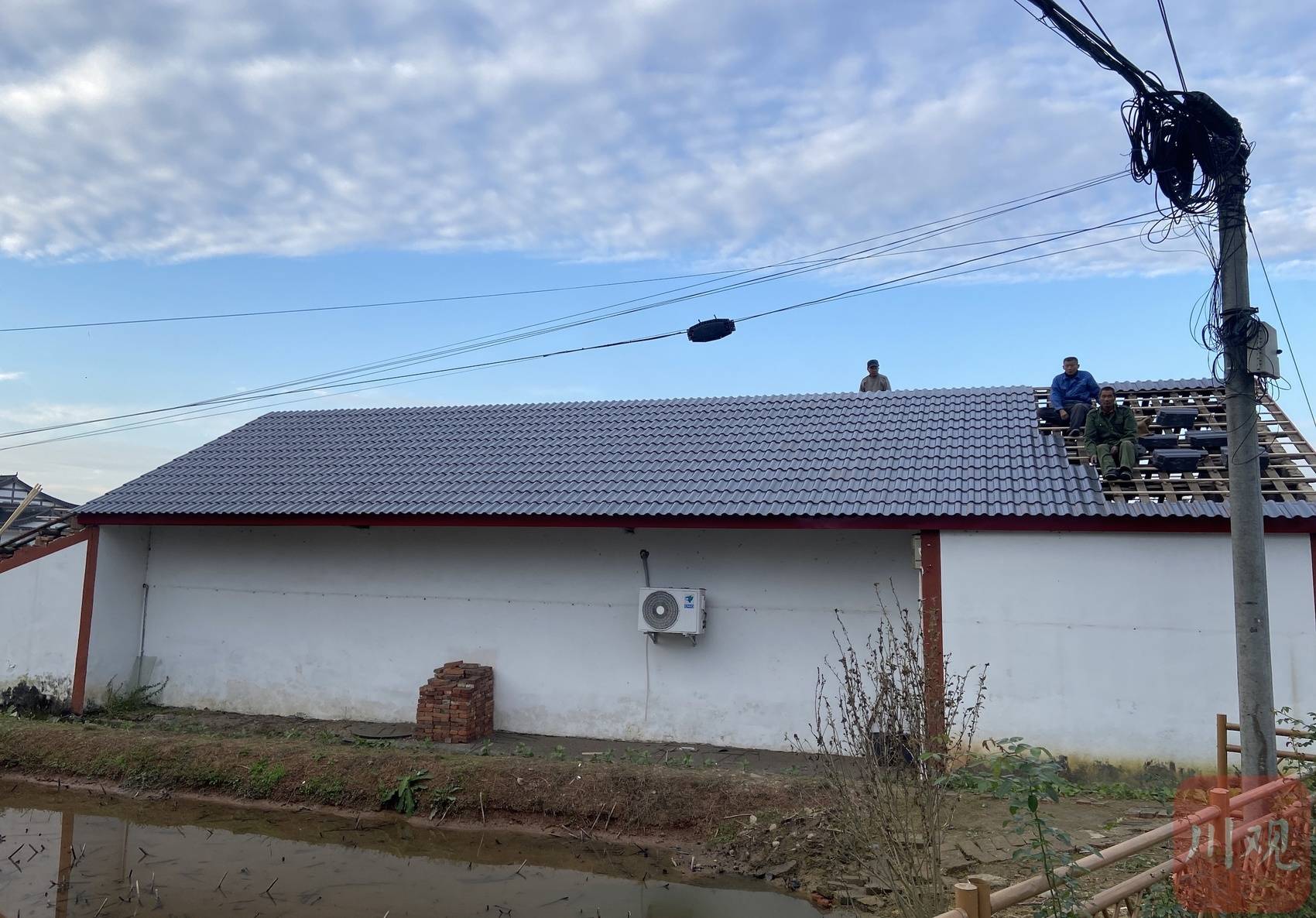 李健康家正在铺设新瓦片。